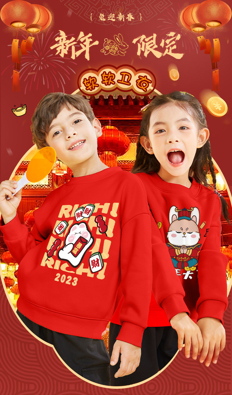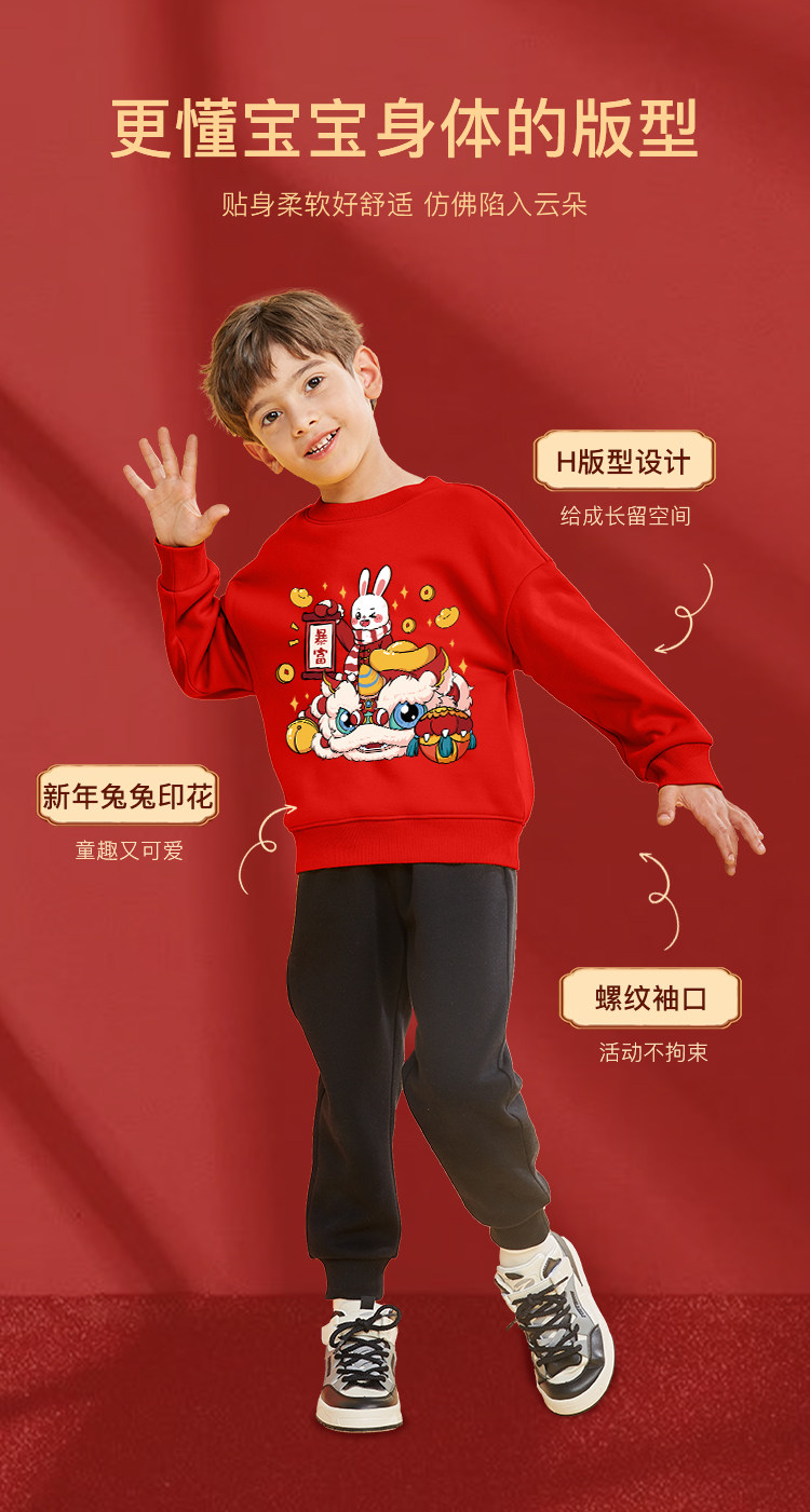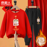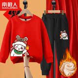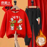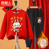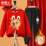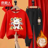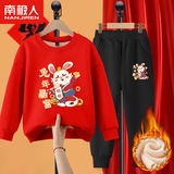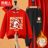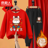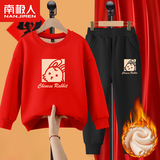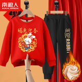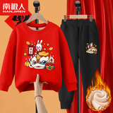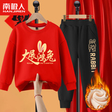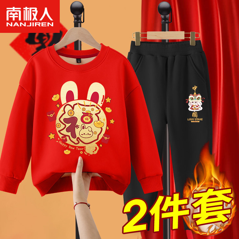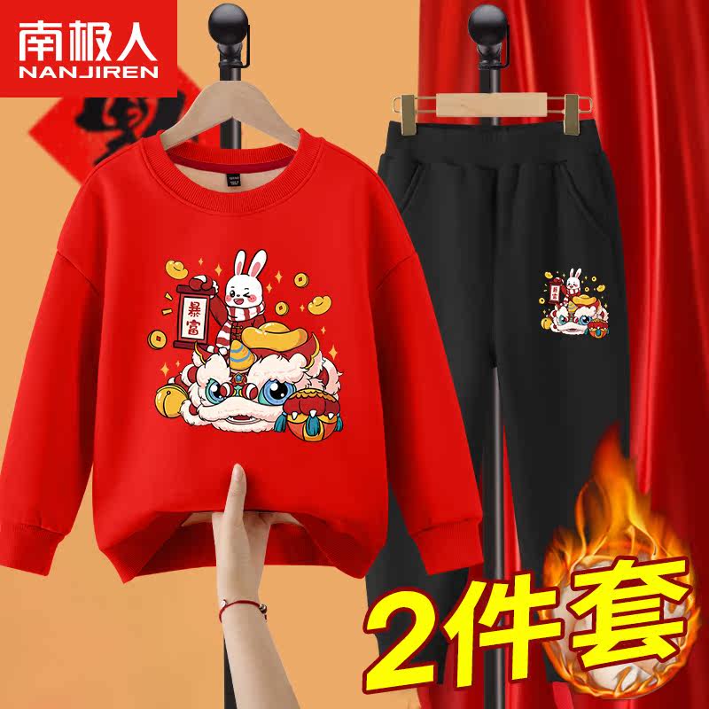 Комплект для мальчиков, красная утепленная детская толстовка, коллекция 2022, подходит для подростков, детская одежда, год кролика