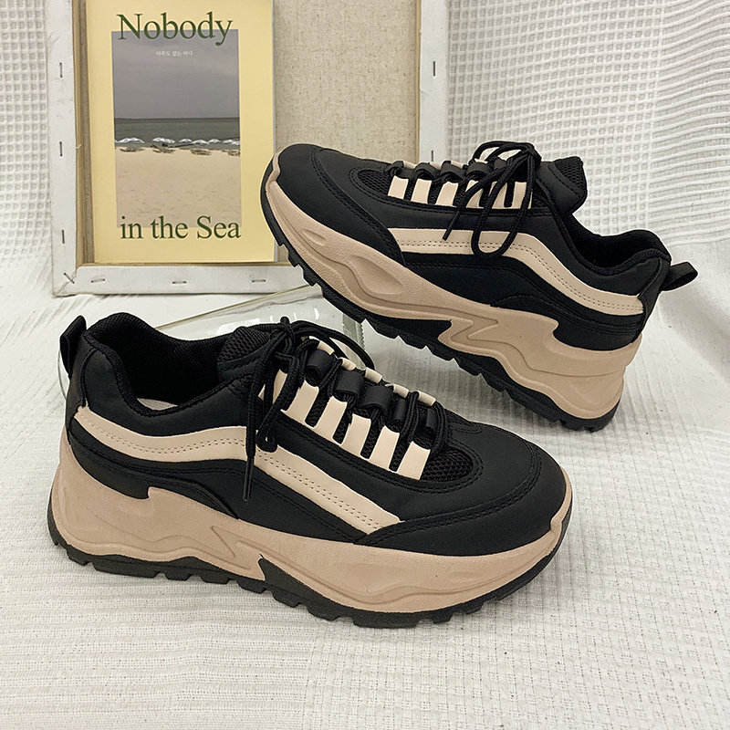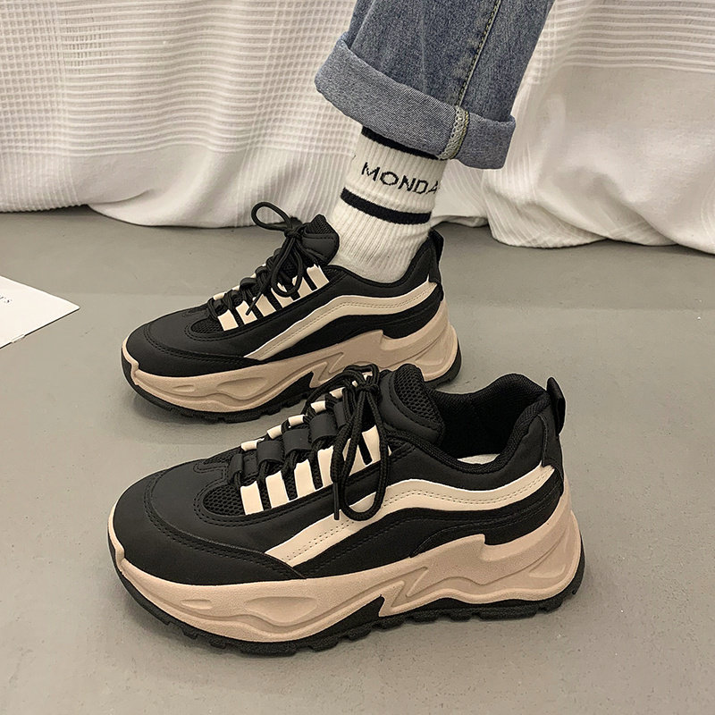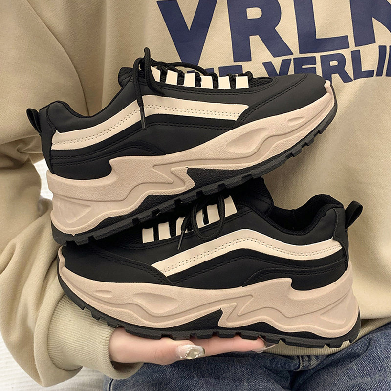 Новинка 2022 года, осень и зима, популярная в этом году обувь на толстой подошве, демонстрирующая обувь для маленького папочки, женская черная универсальная спортивная обувь интернет-знаменитостей