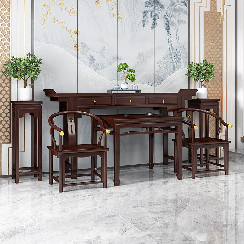 Новый китайский стиль среднего холла шесть -сплошной древесины для столов для сельских стульев Tangwu Taishi Four -Piece Древняя Будда Платформа