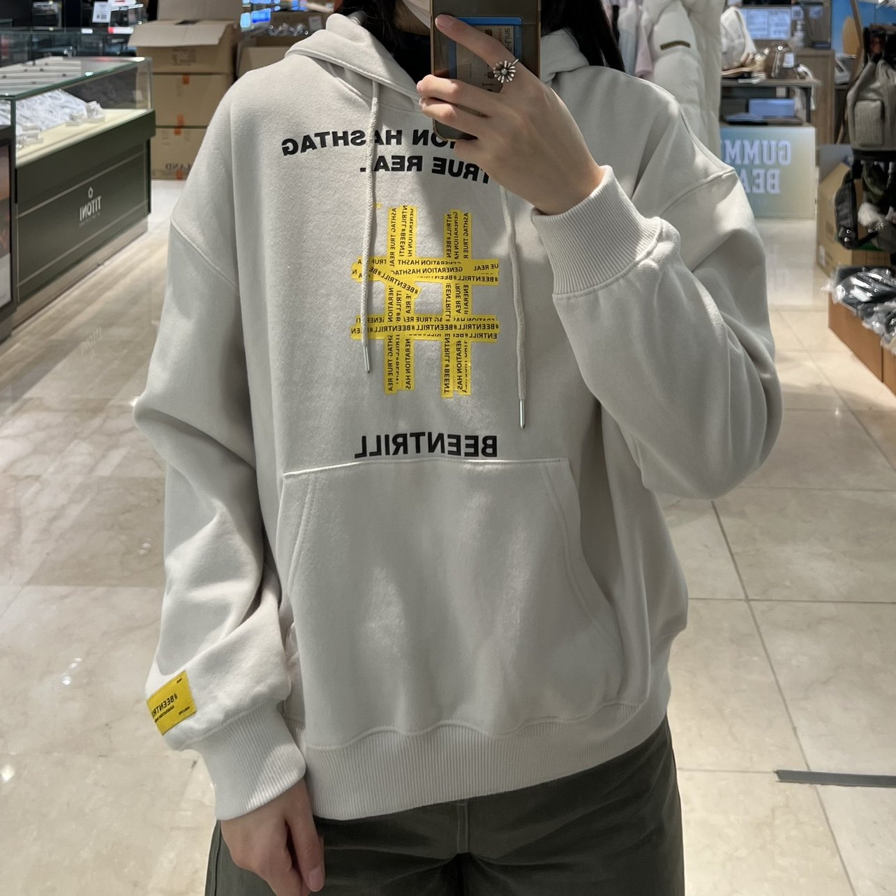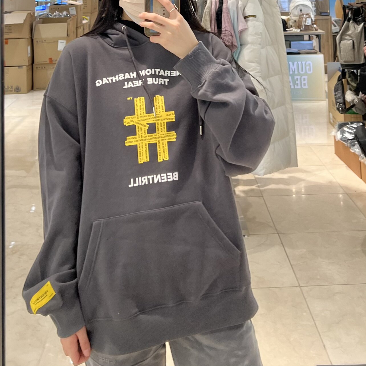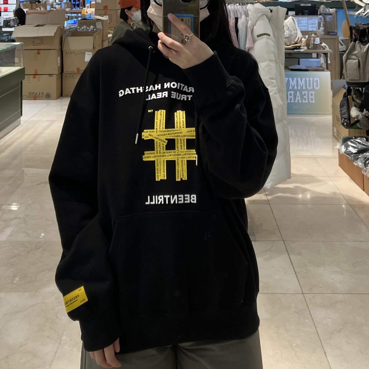 Корейский бренд прилив приобретения бейтрилл222FW Справочный скважина -резиновый принцип с резиновым приюном плюс бархатный капюшон. Свободный свитер