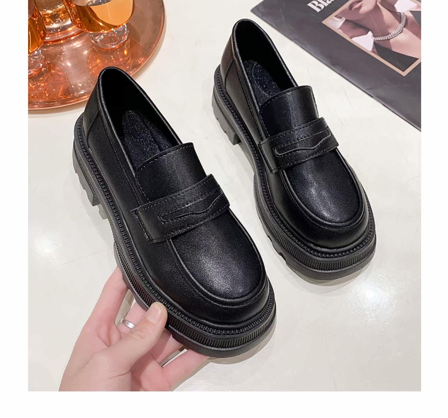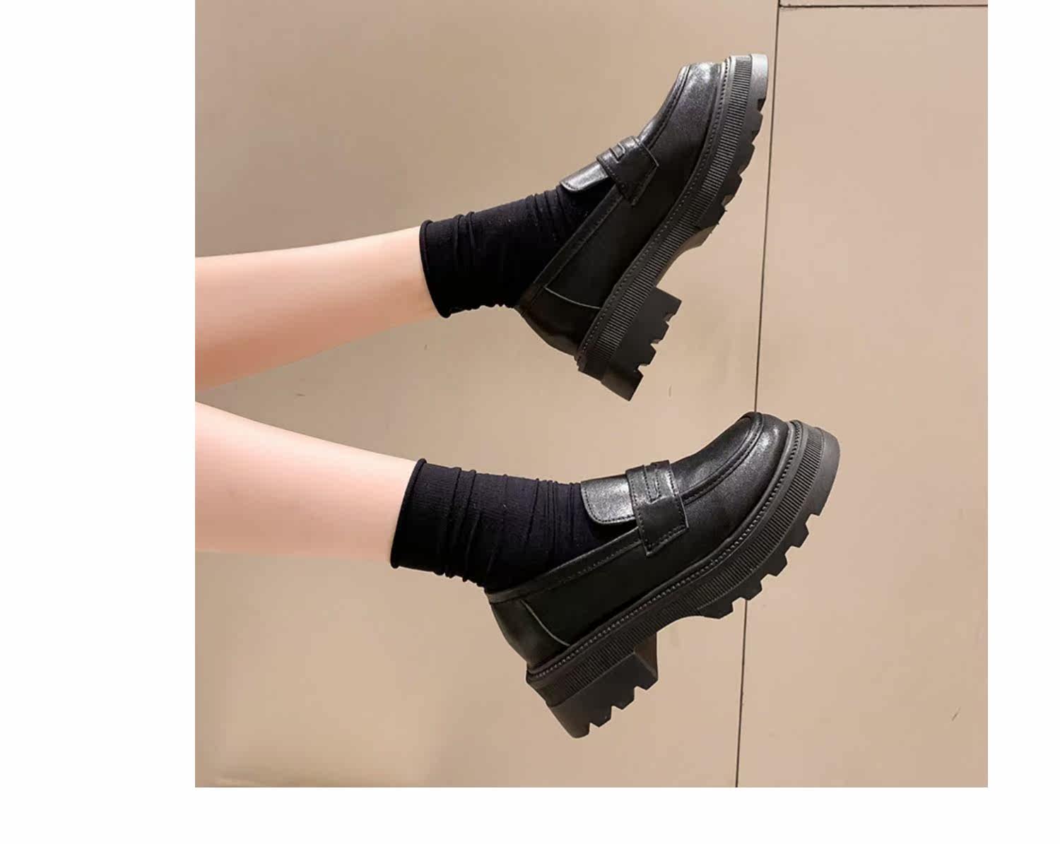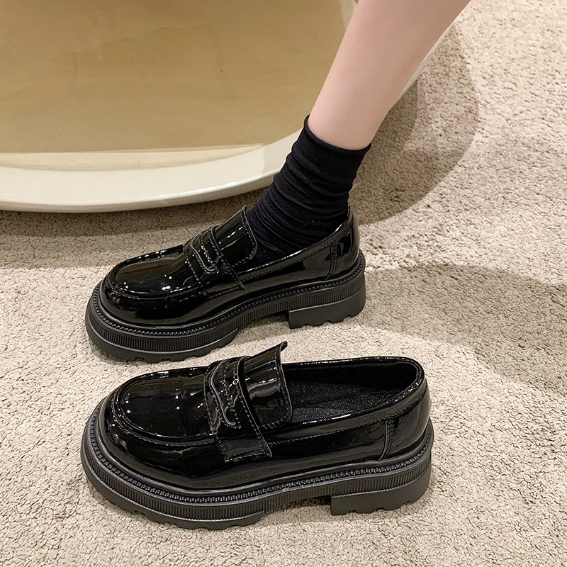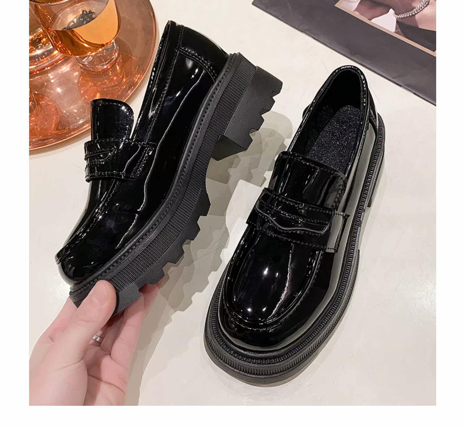 Демисезонная обувь в английском стиле на платформе для кожаной обуви, универсальные черные лоферы, в британском стиле, коллекция 2022