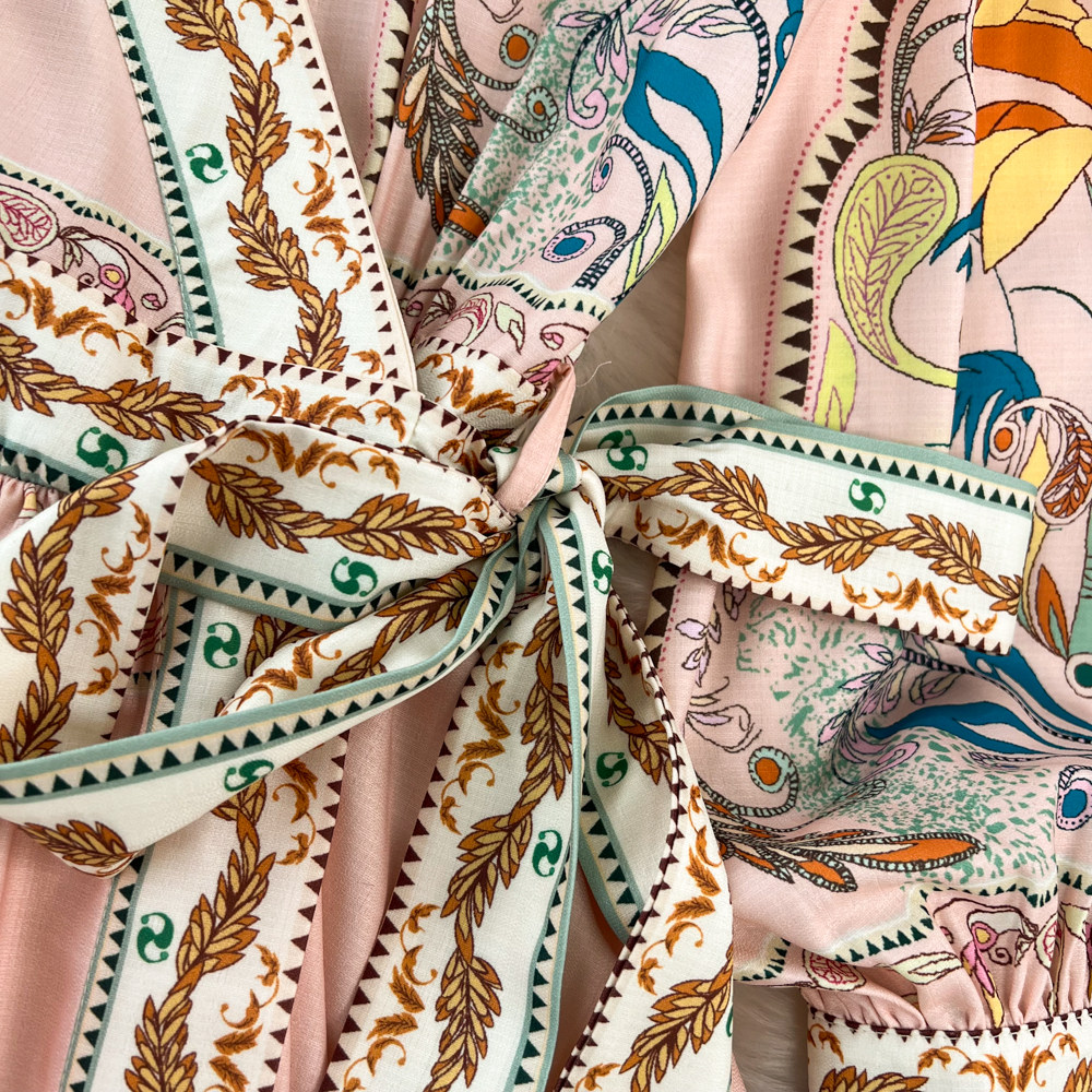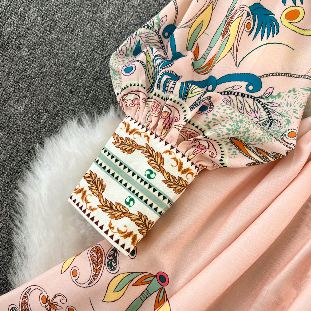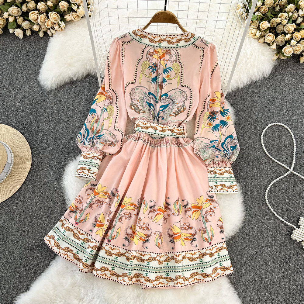 Ретро этнический фонарь, лонгслив, приталенный корсет с бантиком, платье, этнический стиль, V-образный вырез, А-силуэт