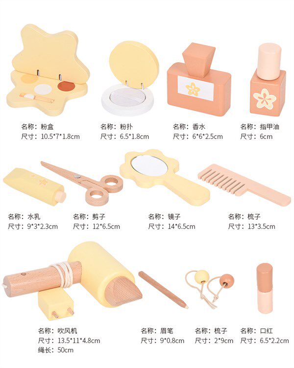 Деревянный детский семейный туалетный столик, реалистичная расческа, тени для век, рубиновая детская помада, подарок на день рождения
