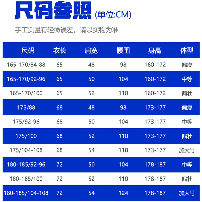 | Размер: | 155-160/84-88 (женская модель), 165-170/84-88 (тонкий), 165-170/92-96 (среда), 165-170/100 (жир), 175/84-88 (худой), 175/92-96 (среда), 175/100 (жир), 175/104-108 (жир), 180-185/92-96 (среда), 180-185/100 (жир), 180-185/104-108 (жир), 190/112-116 (можно носить до 200 кот) |