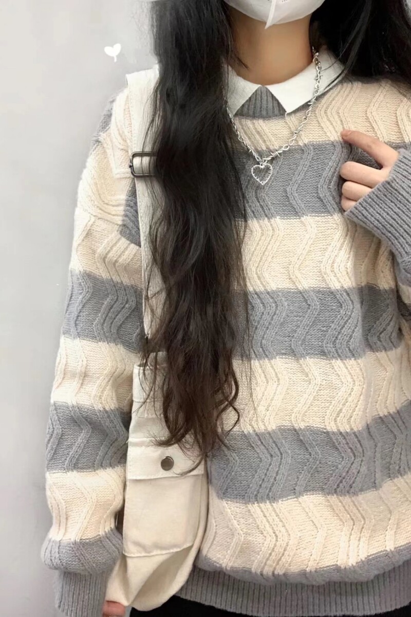 Японский демисезонный трикотажный свитер, свободный крой