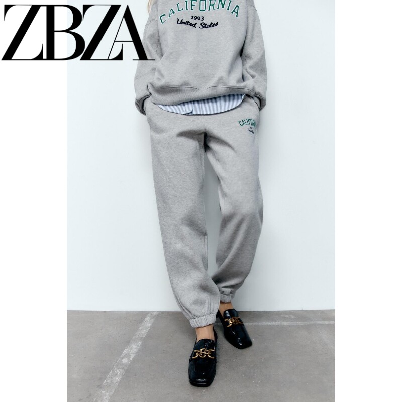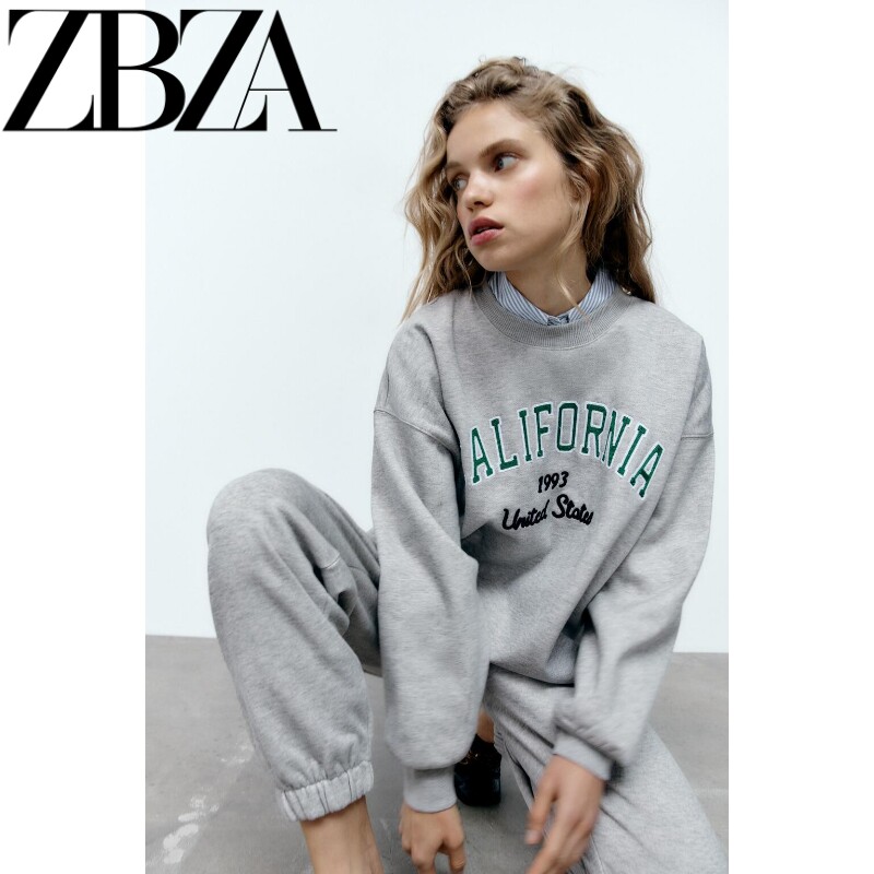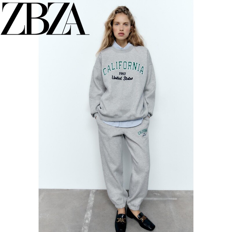 Демисезонный лонгслив с круглым воротником, толстовка, штаны, городской стиль, с вышивкой