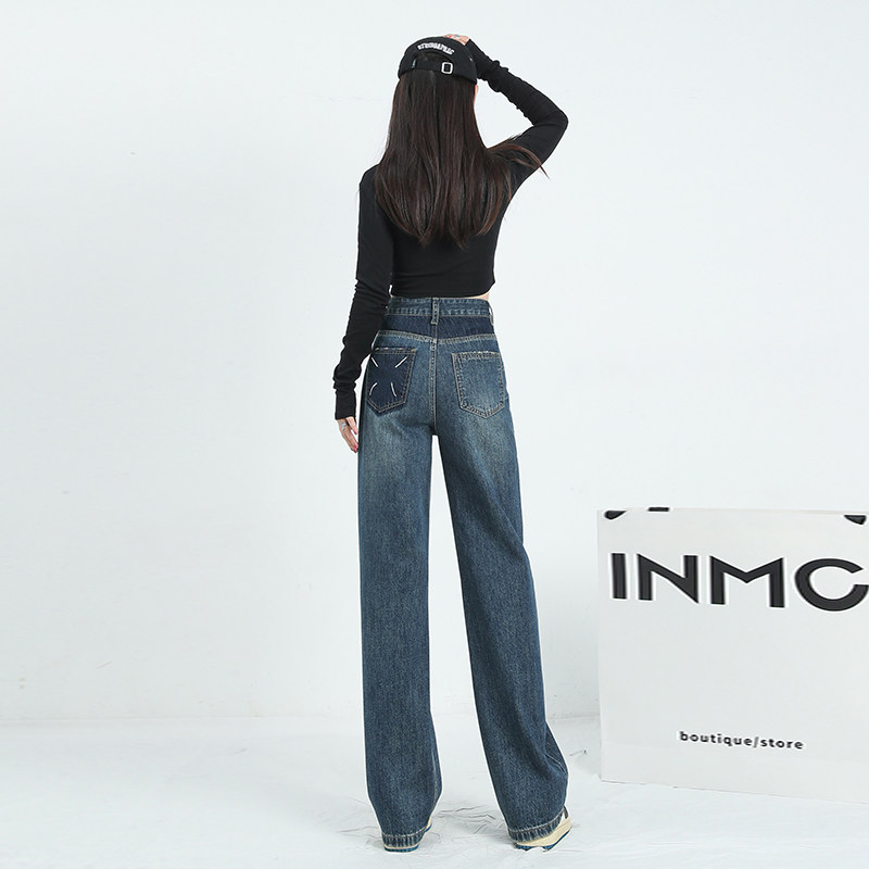 Tide, утепленные прямые свободные джинсы, ретро штаны, высокая талия, с вышивкой, в американском стиле