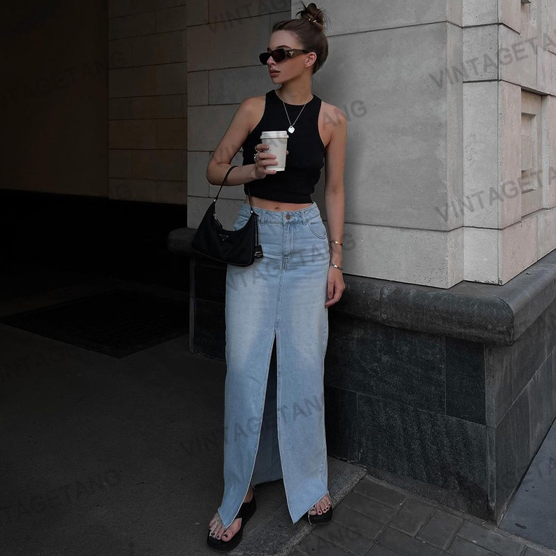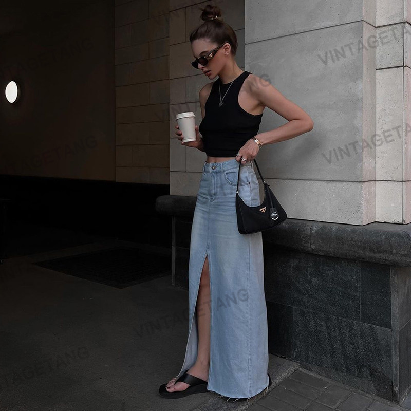 Ретро длинная джинсовая юбка, длинная юбка, в американском стиле, в обтяжку
