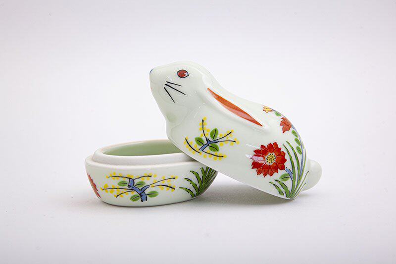 Qiquan, производство Япония, растительный зодиакальный кролик, фарфор, белая банка для хранения конфет и закусок, миска для приготовления пищи, 5,5 см.