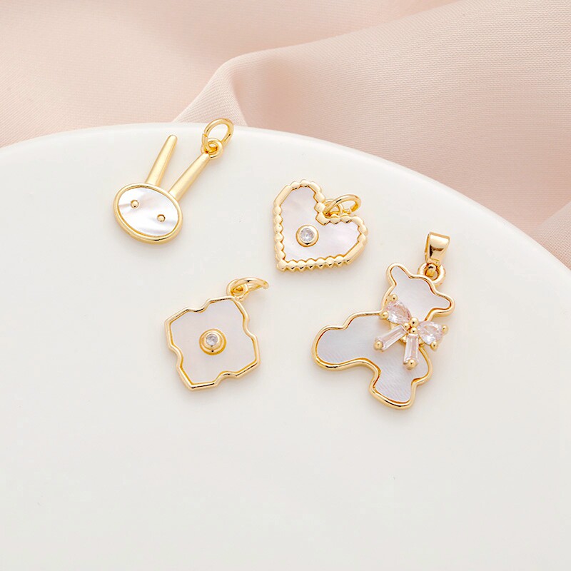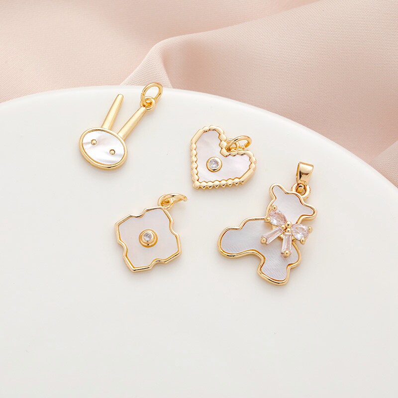 Позолоченный белый кролик с цирконом, подвеска, аксессуар с аксессуарами, 14 карат, золотой цвет, с медвежатами, четырехлистный клевер, DIY