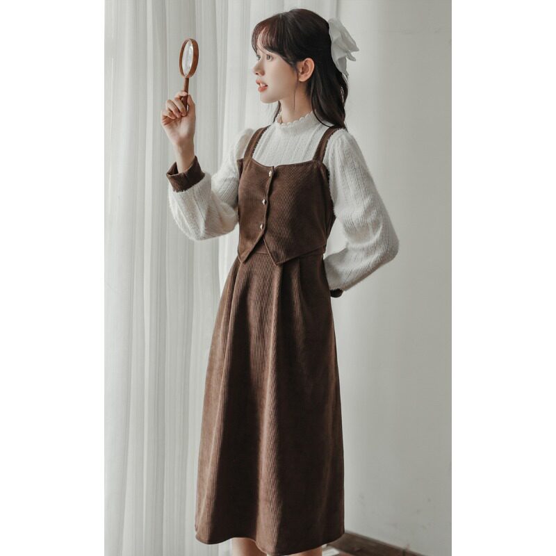 Ретро комплект, демисезонные подтяжки, демисезонное дизайнерское осеннее платье, тренд сезона, в западном стиле