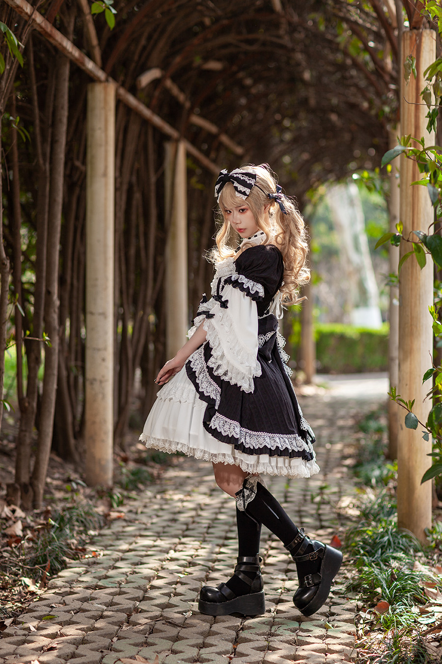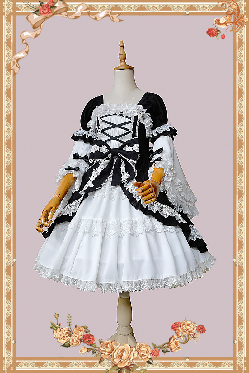 婴梵塔 Лолита*Раннее древнее стиль кукла, открытая OP*Jielolita Черно -белое иностранное платье в Лолите