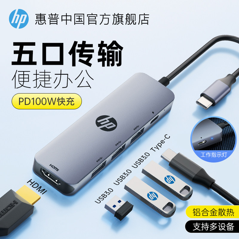 HP HP Расширение Docky Typec Expand HDMI сцены для преобразования USB -разделителя Hub Circle Многофункциональный интерфейс Многофункциональный поворотный терминал компьютер iPad планшет мобильный телефон мобильный телефон