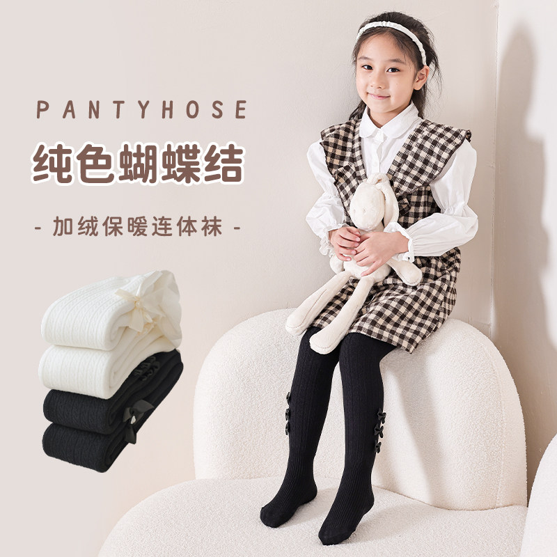 Детские хлопковые утепленные колготки, белые базовые леггинсы
