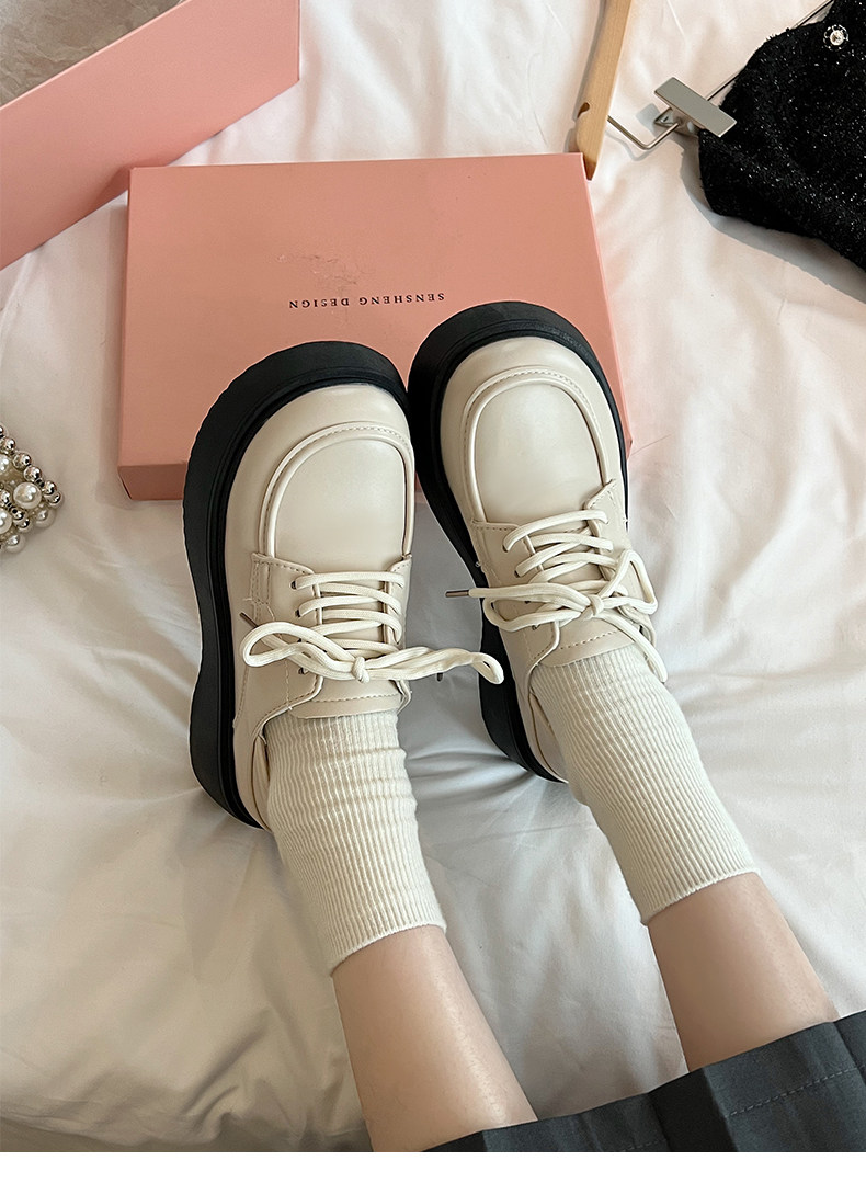Белая универсальная весенняя обувь в английском стиле для кожаной обуви на платформе, в британском стиле, французский стиль