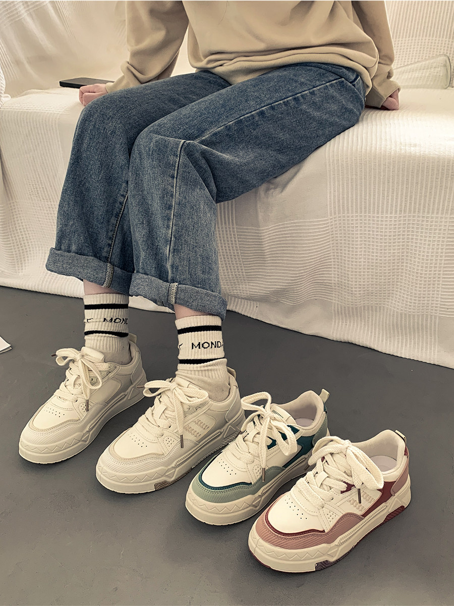Весенняя демисезонная белая обувь на платформе, высокие кроссовки, универсальная спортивная обувь для отдыха, популярно в интернете, коллекция 2023