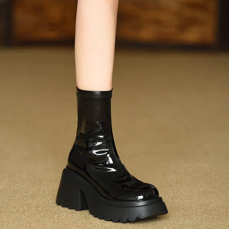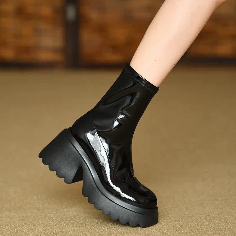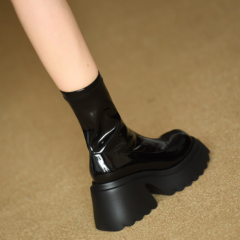 Эластичные высокие сапоги, демисезонные короткие сапоги, туфли на высоком каблуке, ботинки