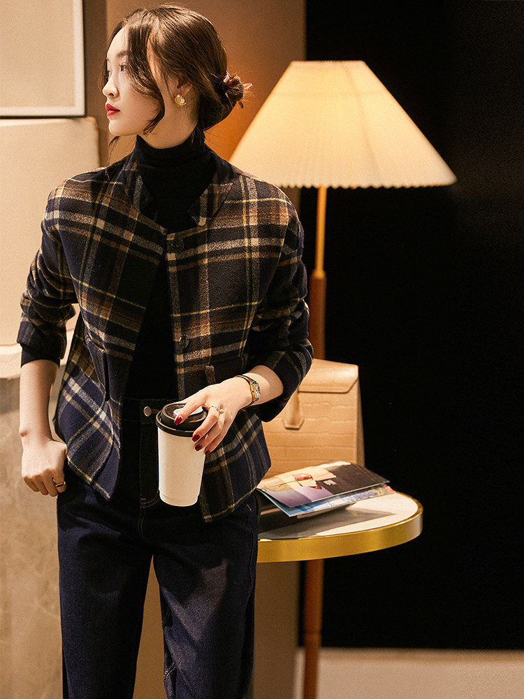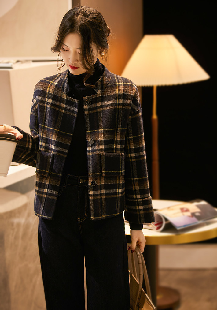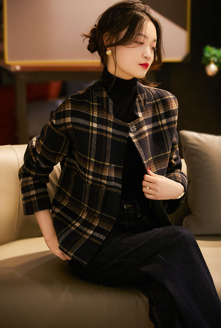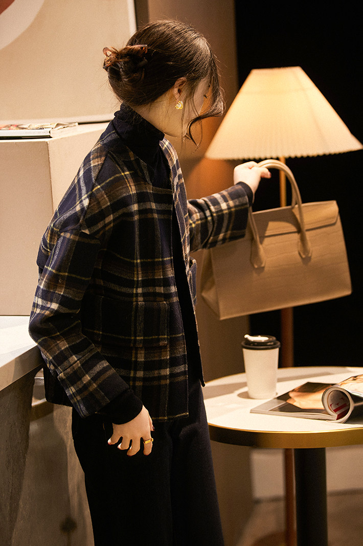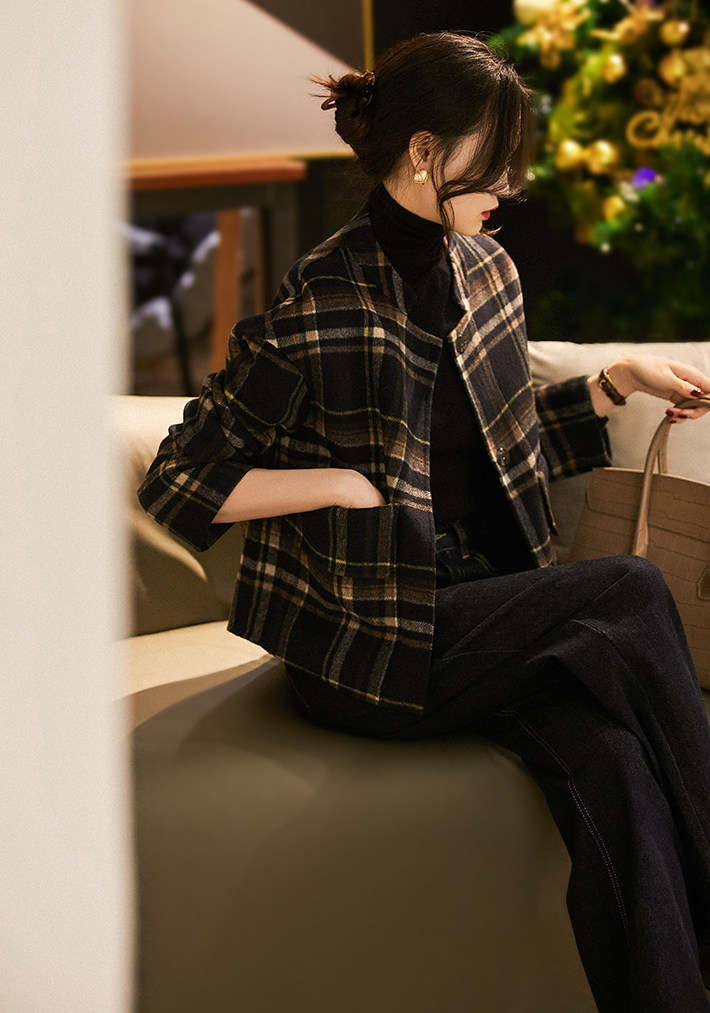 @[Dyw466182vg] Сяхан павильон высококачественный мягкий клейкий ретро -эдж с ослабленным чек к клетчатую коротки