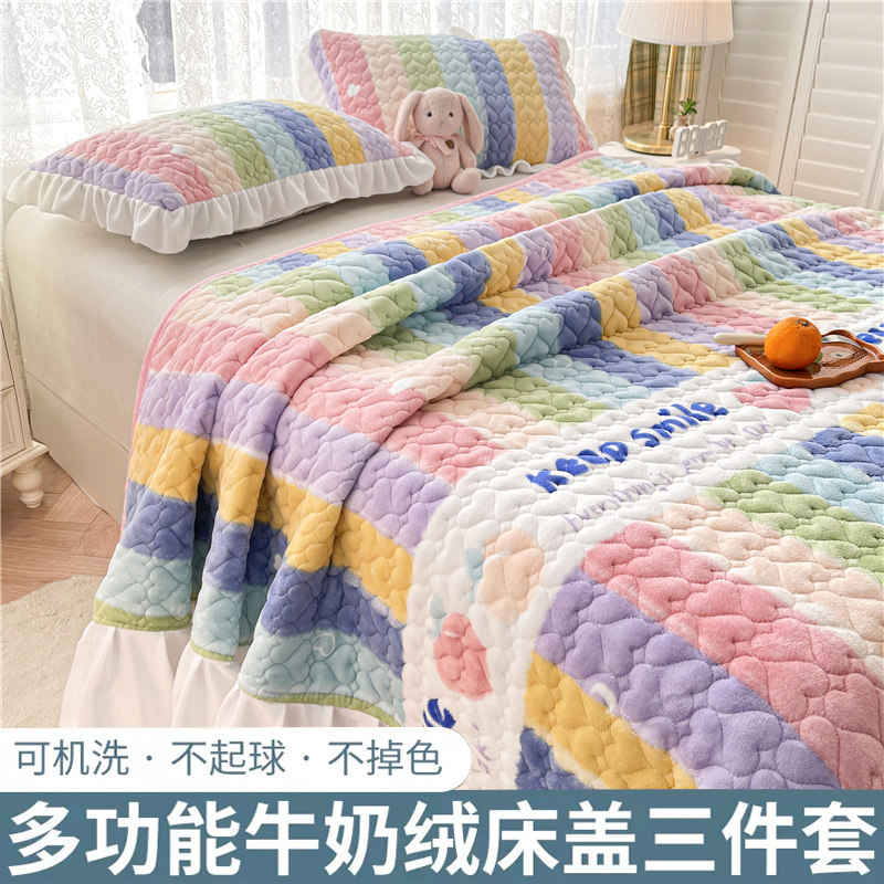 Зимняя флисовая стеганая простыня, комплект, коллекция 2022, увеличенная толщина, 3 предмета