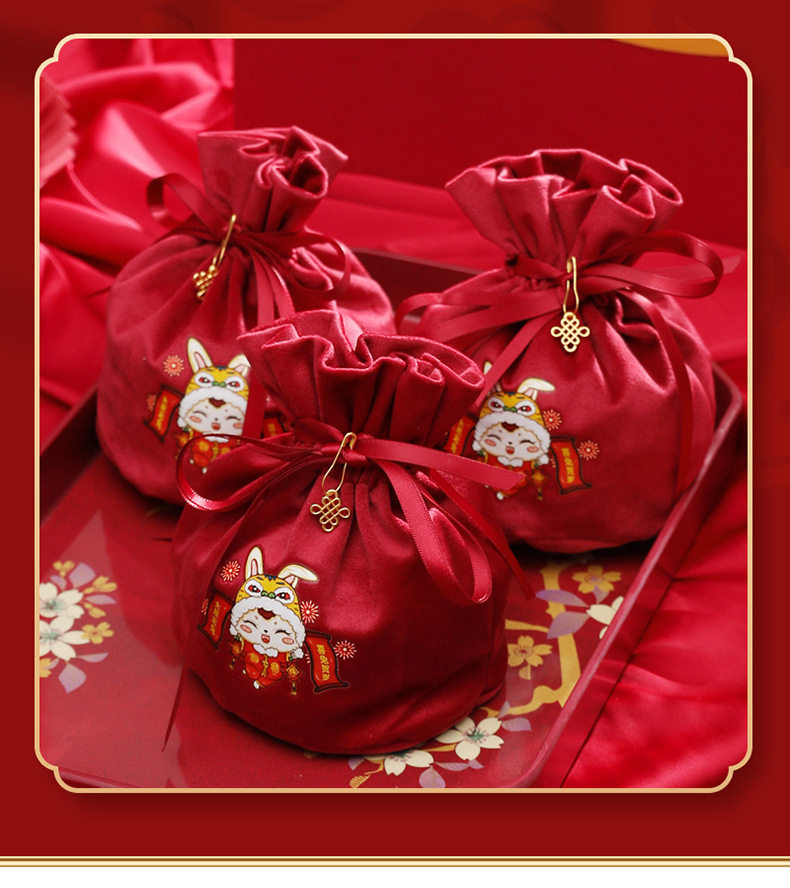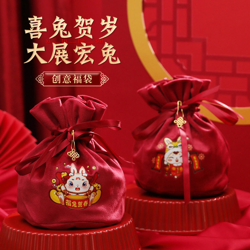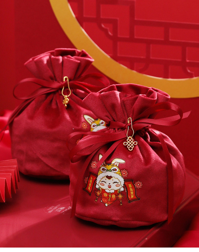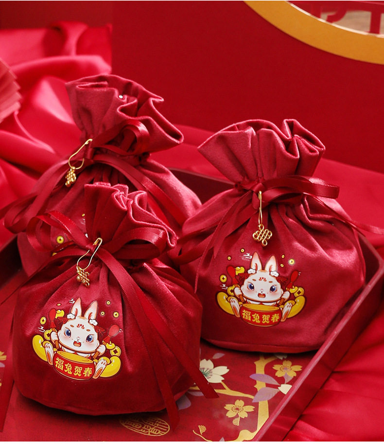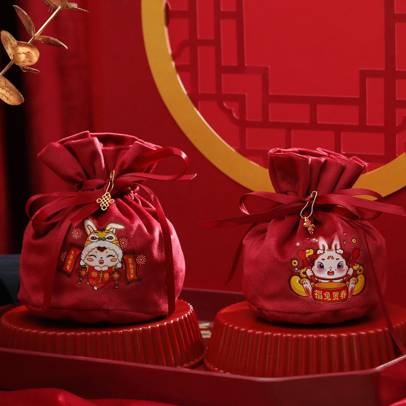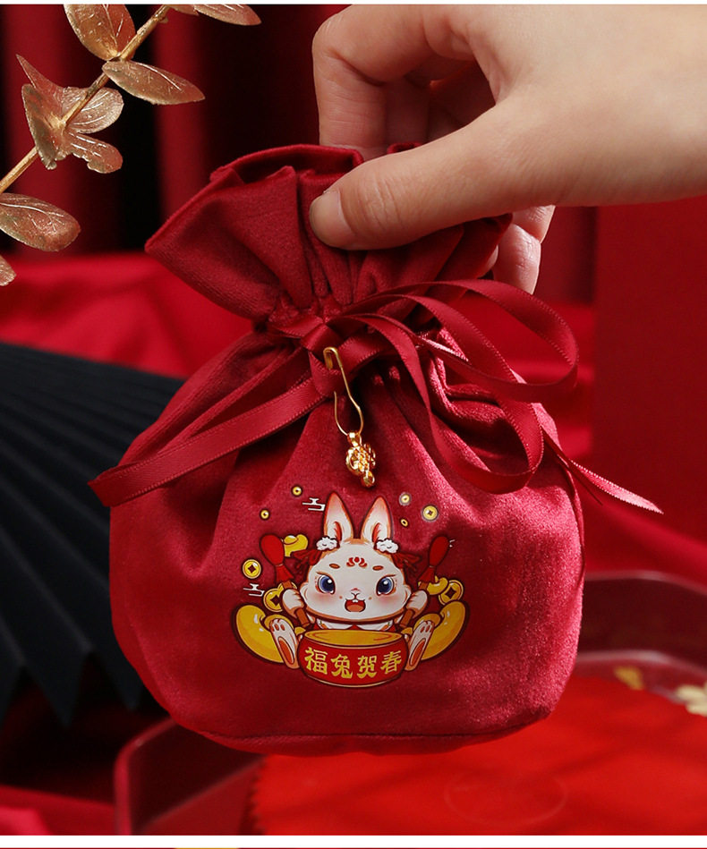 Детская подарочная коробка, бархатная сумка, бархатный тканевый мешок, 2023, год кролика, подарок на день рождения