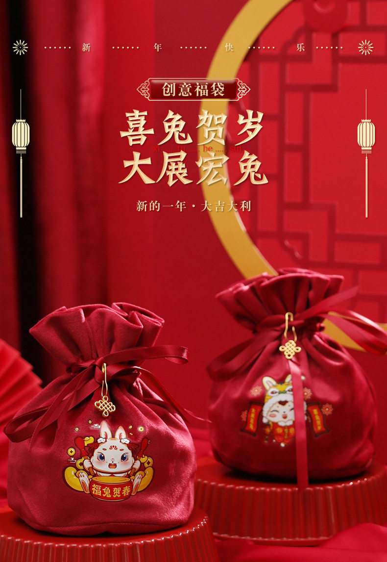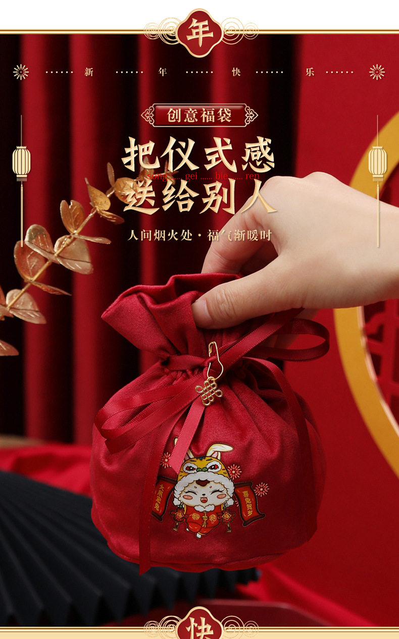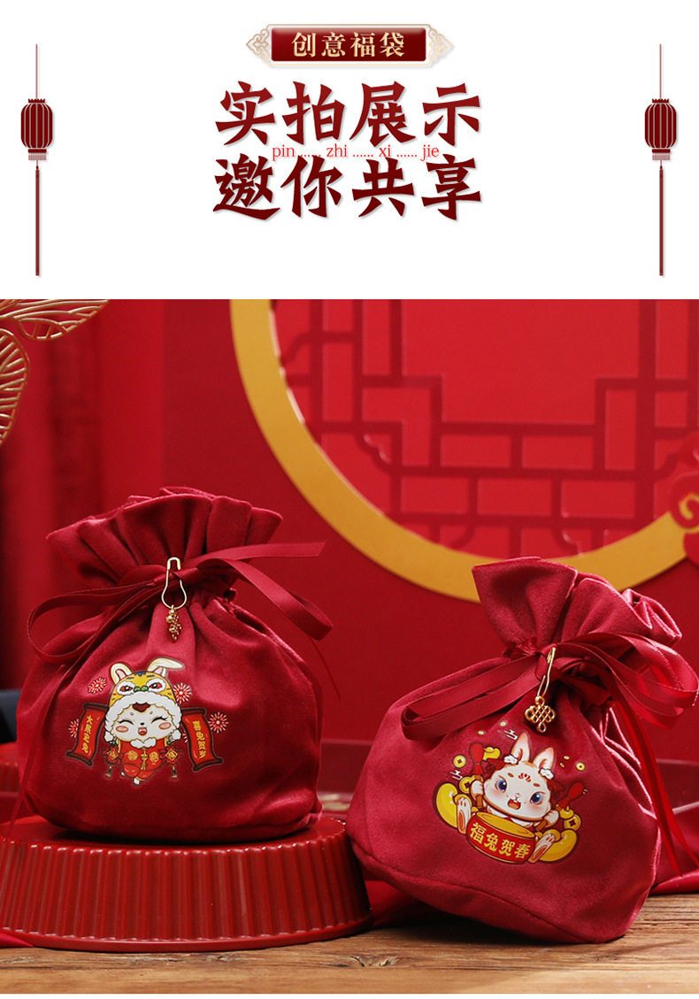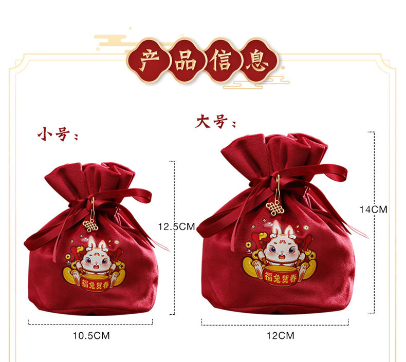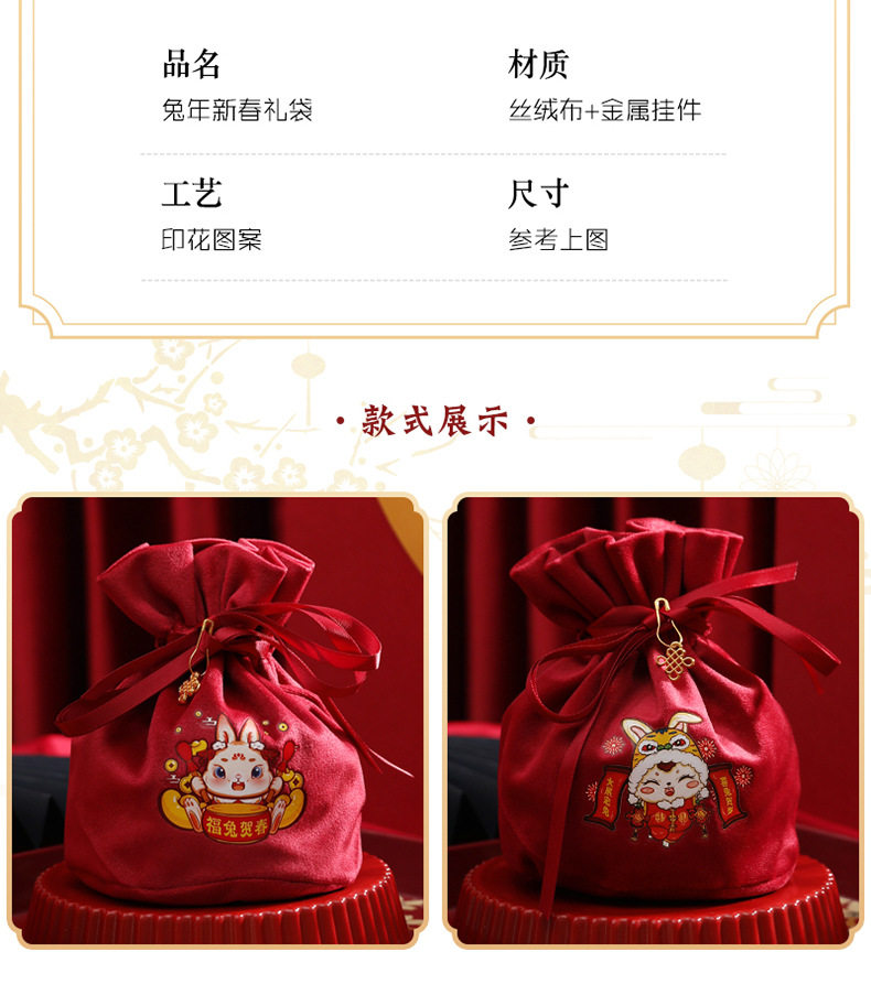 Детская подарочная коробка, бархатная сумка, бархатный тканевый мешок, 2023, год кролика, подарок на день рождения