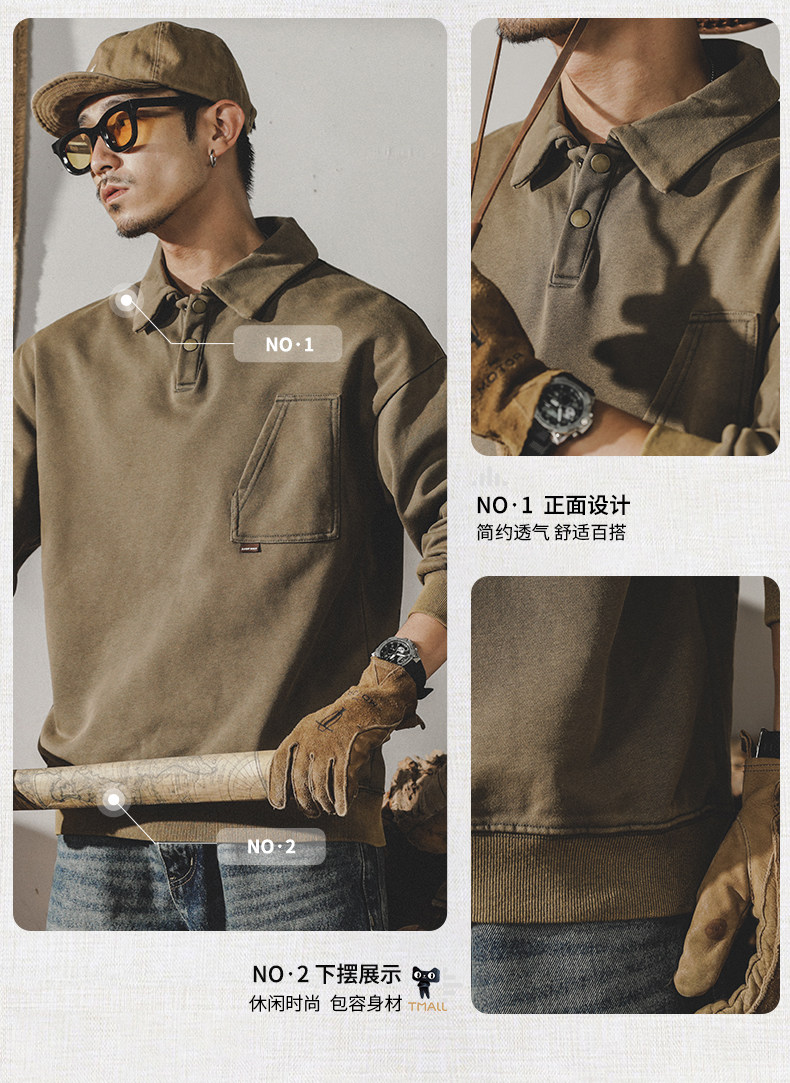 Ретро демисезонная толстовка, футболка polo, в американском стиле, оверсайз