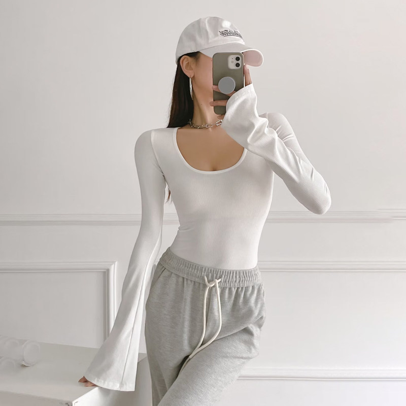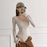 Сексуальный мегафон с круглым воротником, весеннее боди, базовая футболка, в западном стиле