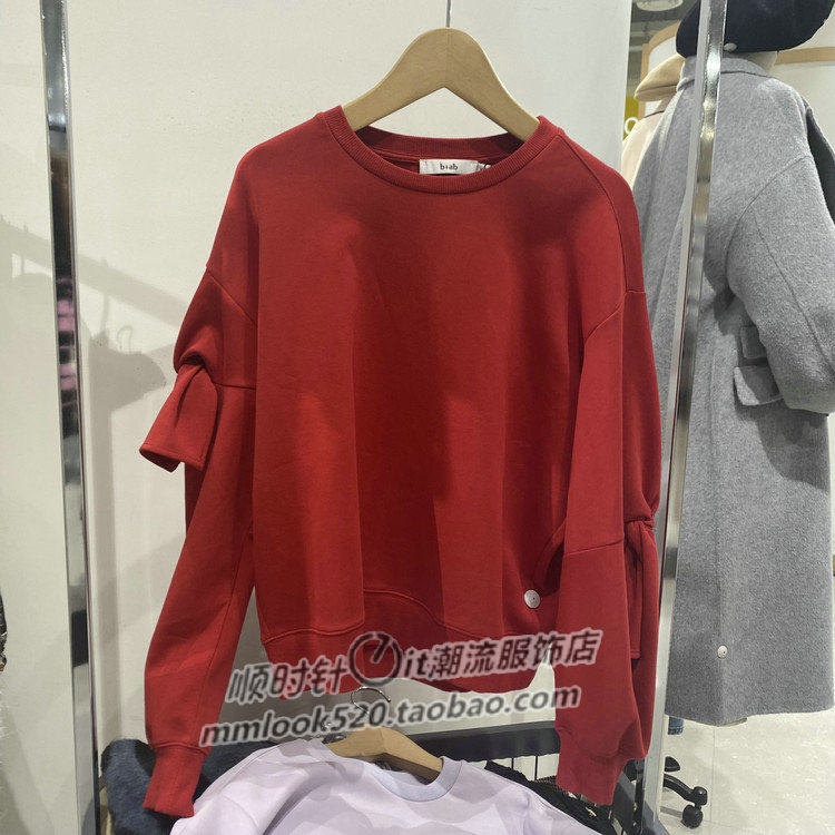 B + AB 23 весна и лето it counter натуральная красная толстовка с круглым вырезом и завязкой на Рождество и Новый год женская 5102