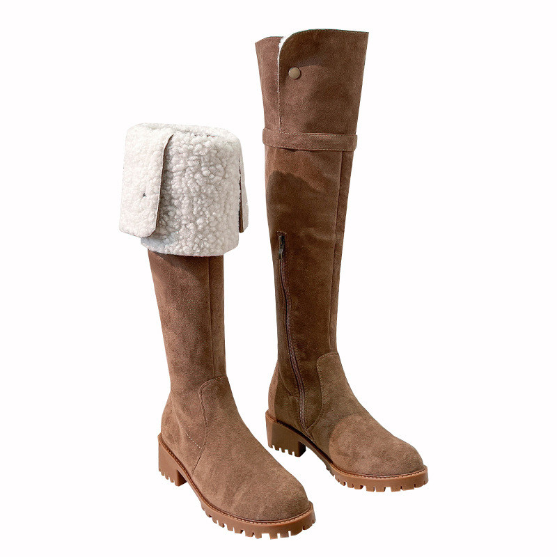 Утепленные замшевые высокие сапоги