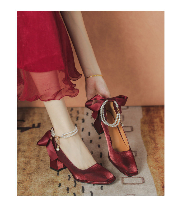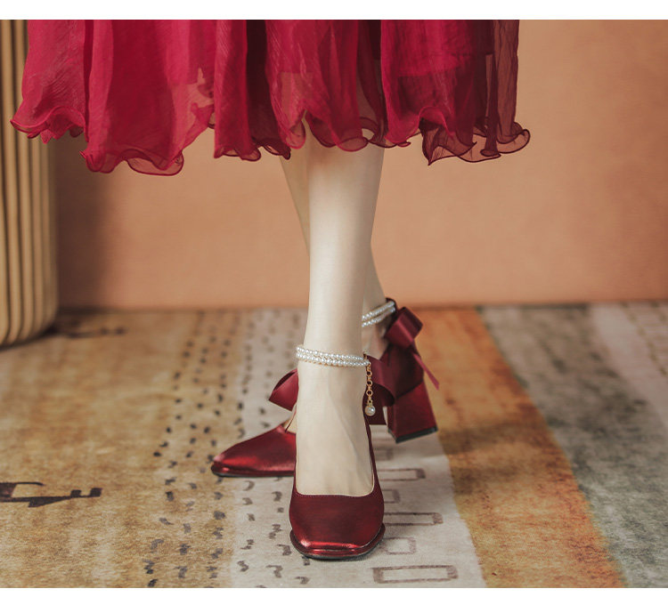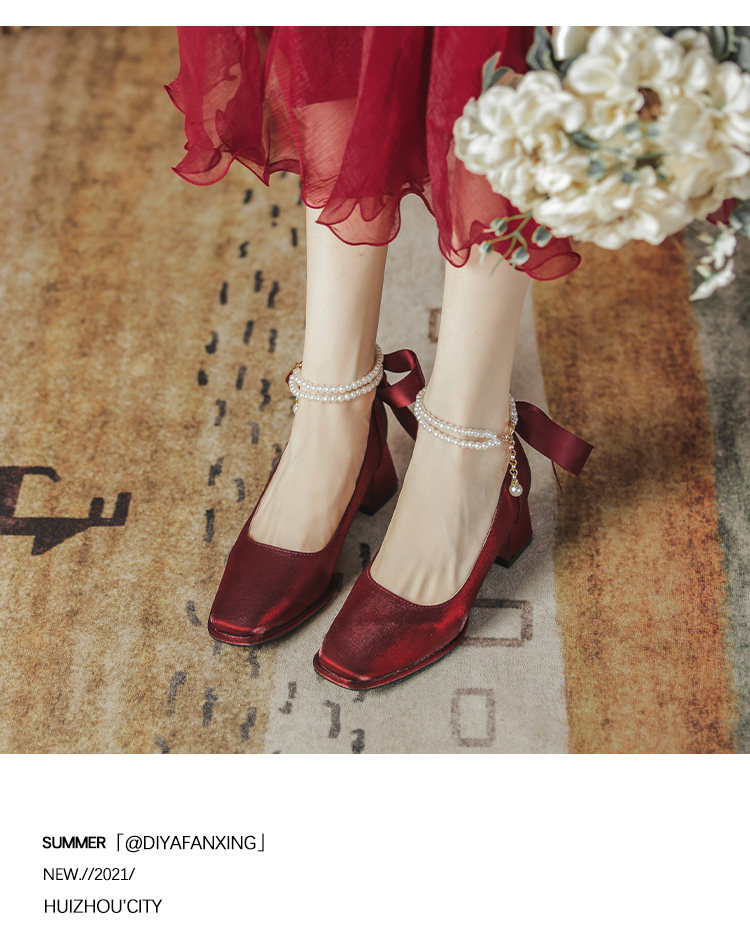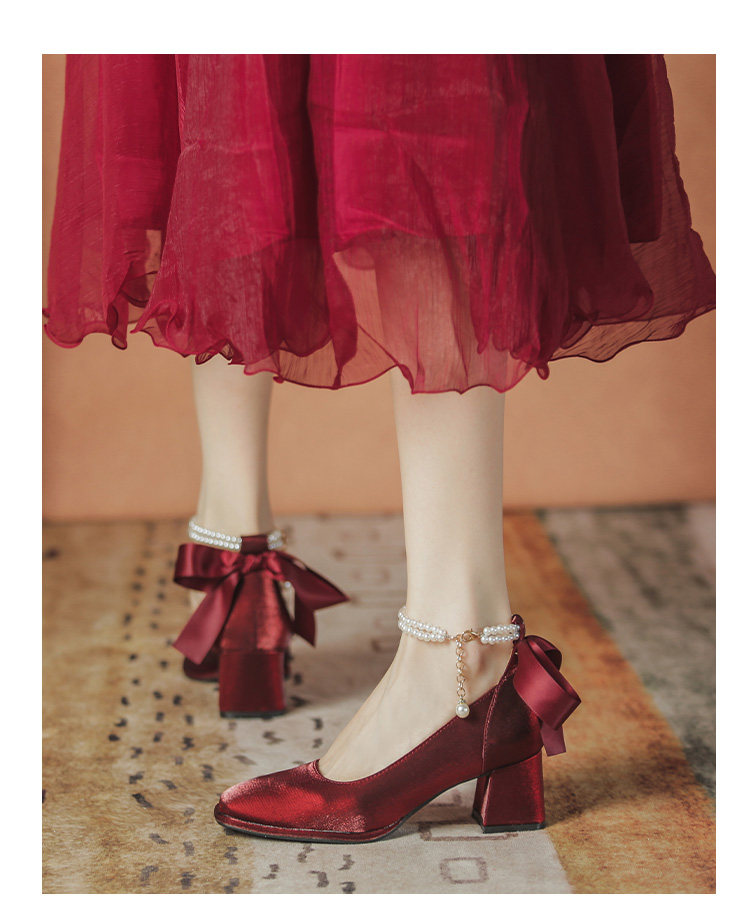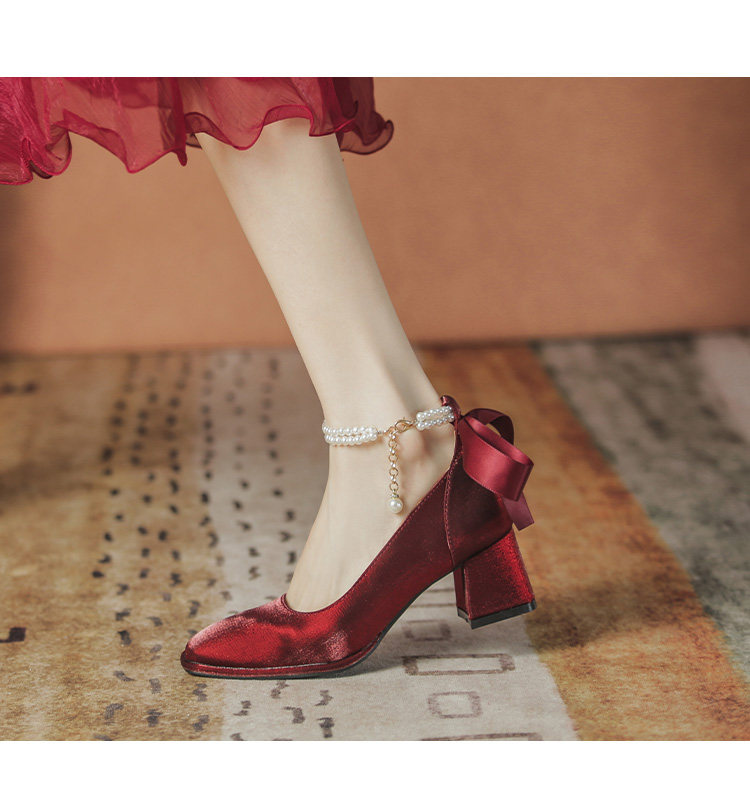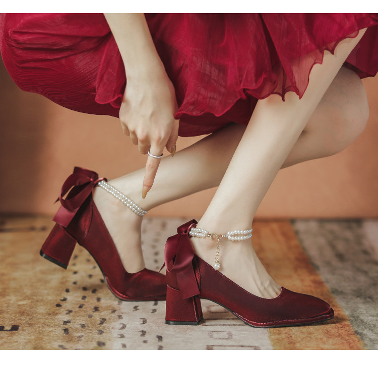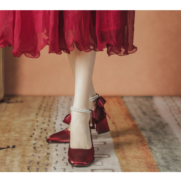 Осенние свадебные туфли для невесты, красные туфли на высоком каблуке