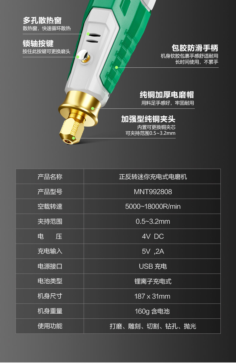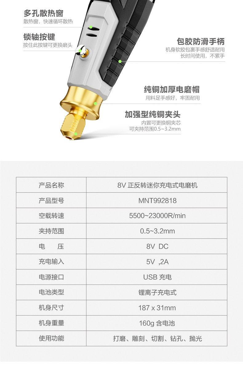 美耐特 Портативный электрический фрезерный станок для ногтей с зарядкой из нефрита, резной ткань для полировки, электродрель