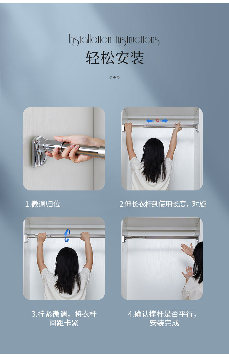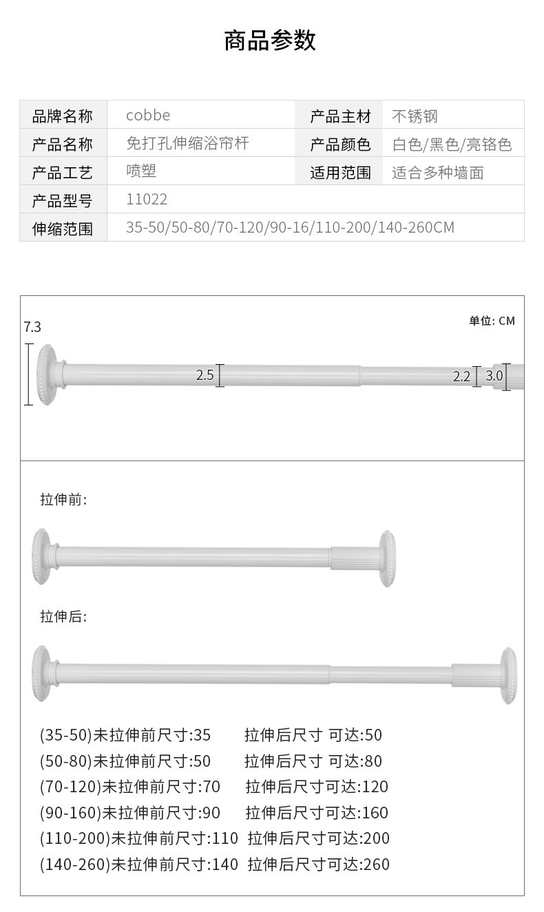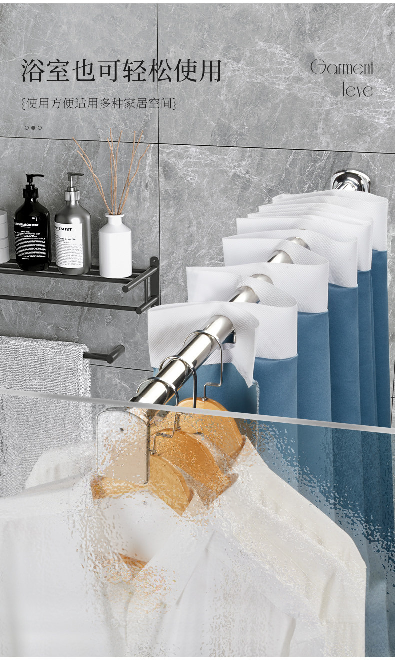 Телескопический стержень без перфорации, карниз для занавески для душа, поддерживающий штангу для одежды, штанга для ванной комнаты, штанга для гардероба, штанга для сушки одежды, вешалка для одежды