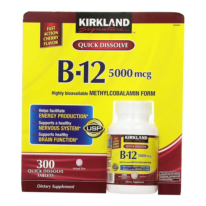 Специальное предложение Kirkland Kokland Vitamin B12 Таблетки 5000 м*300 штук, действительные в феврале 2025 г.