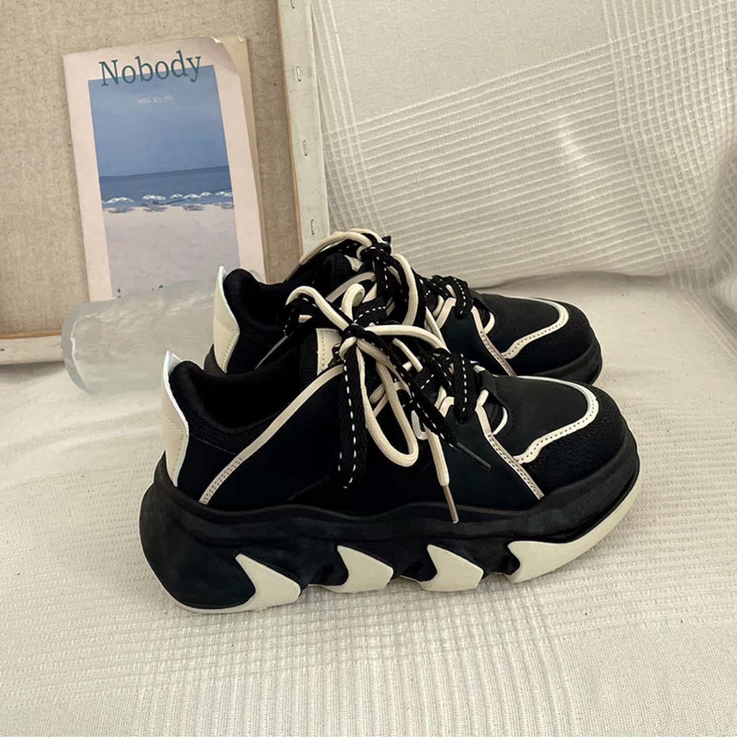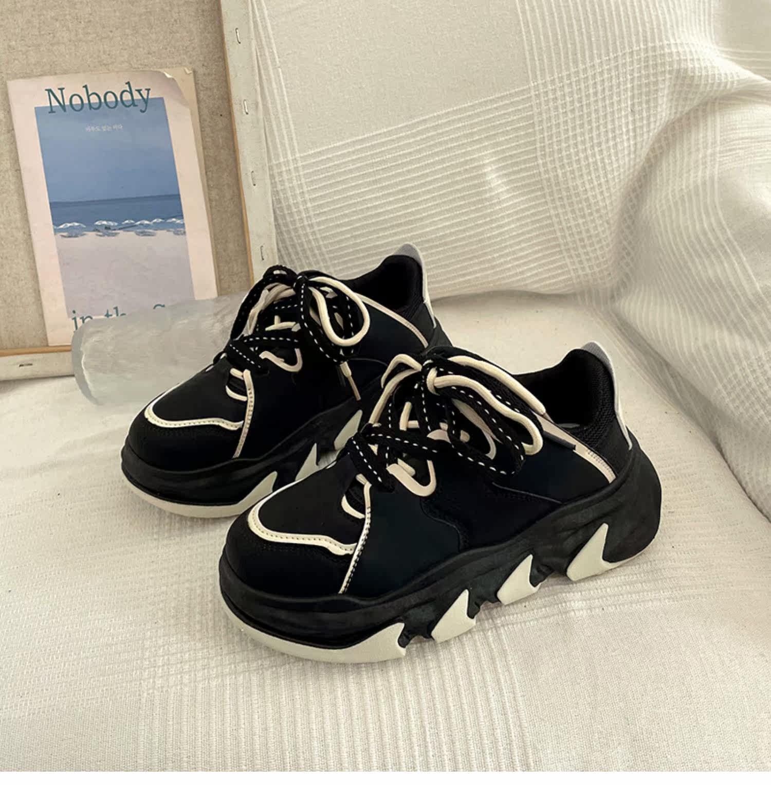 Высокая черная весенняя спортивная обувь для отдыха на платформе, изысканный стиль, коллекция 2023