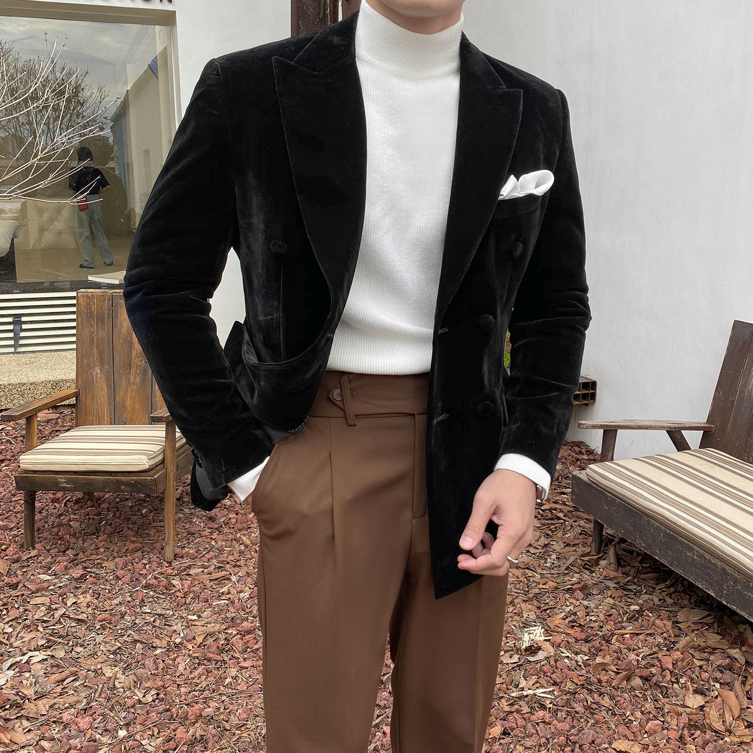 Бархатная мужская высококачественная куртка, демисезонное платье, облегающий крой