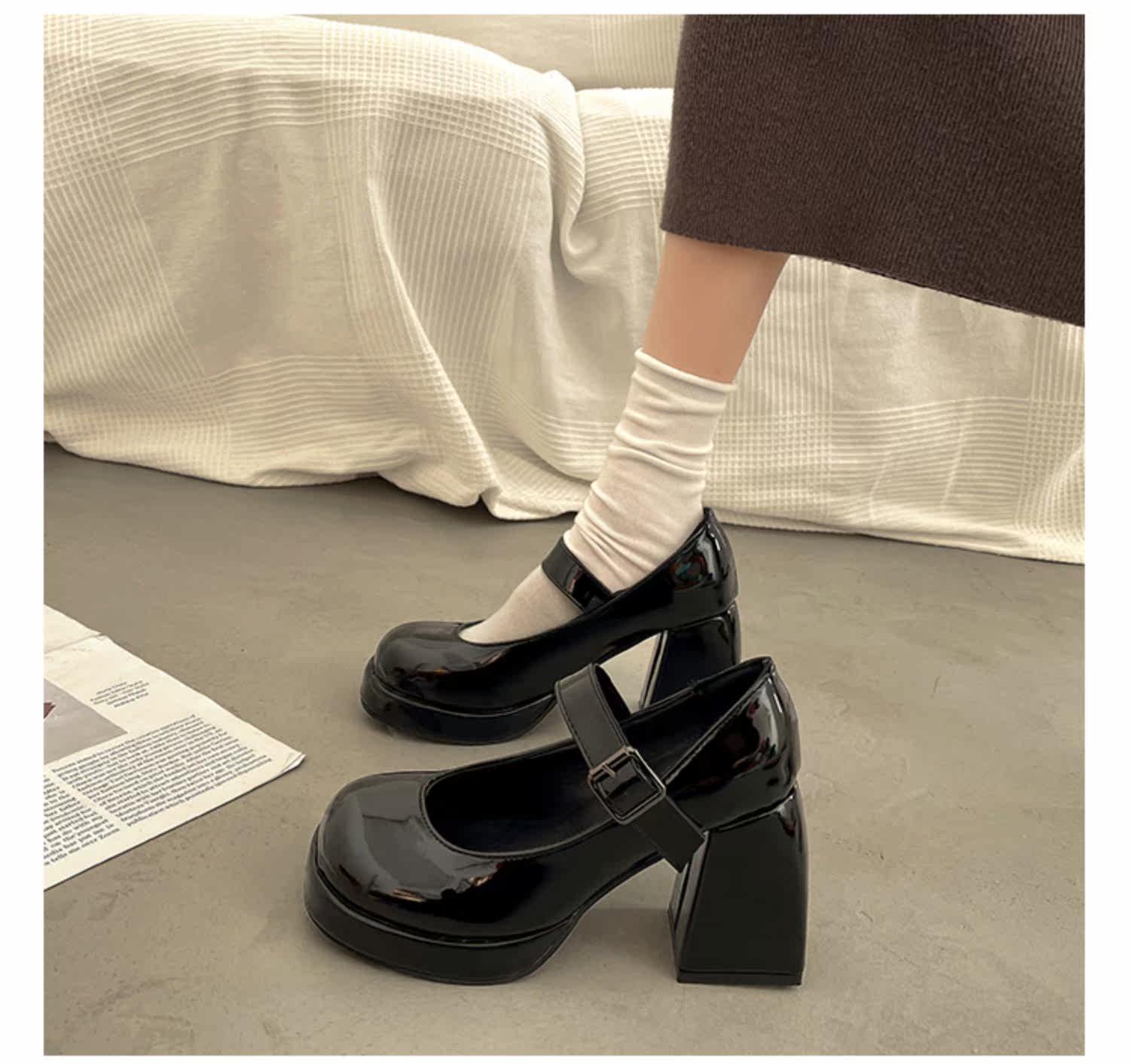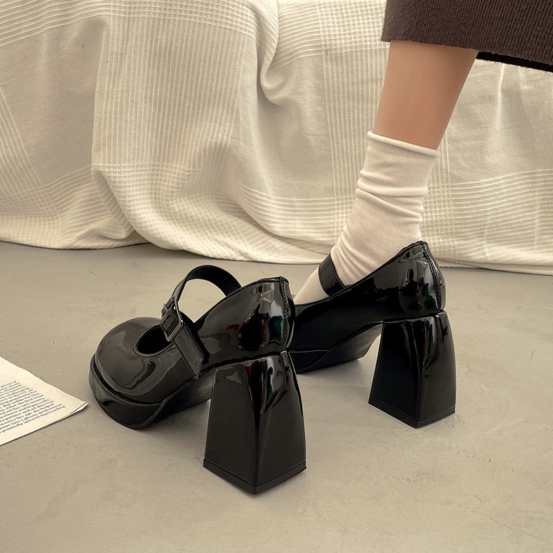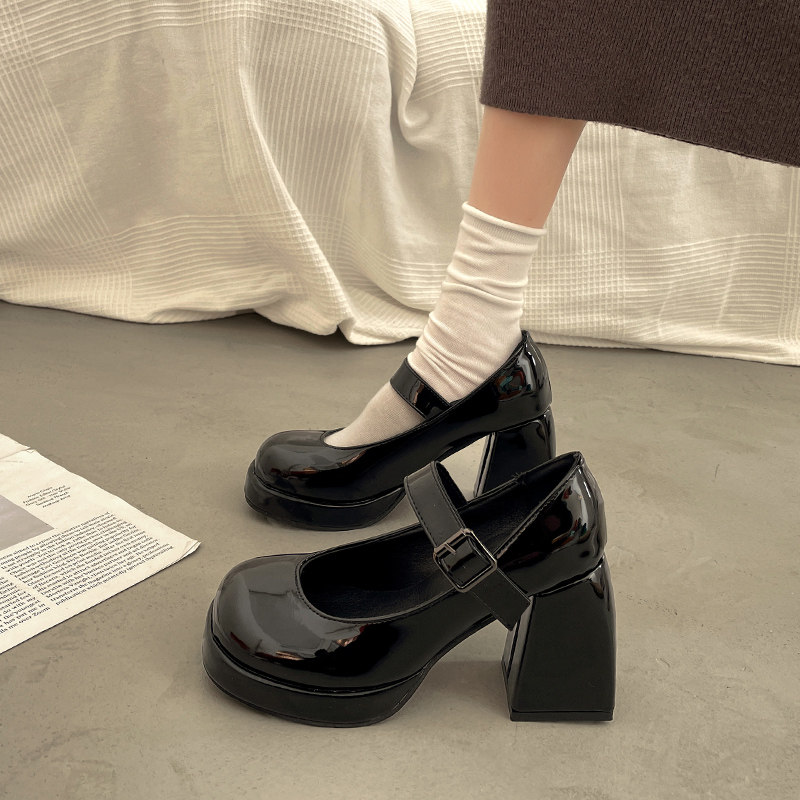 Демисезонная черная обувь в английском стиле для кожаной обуви на высоком каблуке, в британском стиле, коллекция 2023