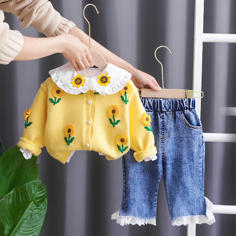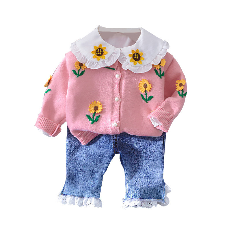 Свитер, рубашка, осенний детский комплект, весенний лонгслив для девочек, 3 предмета, детская одежда, в западном стиле