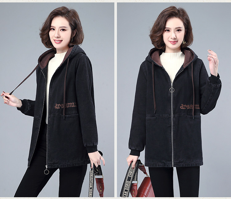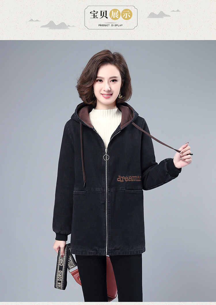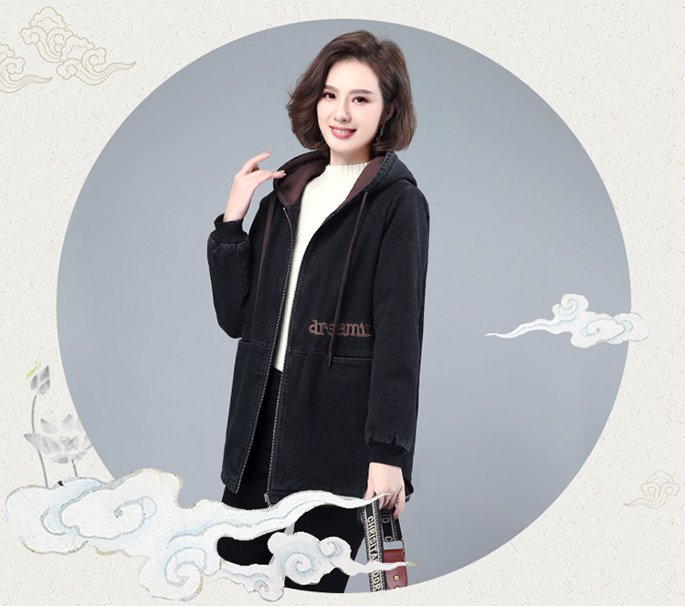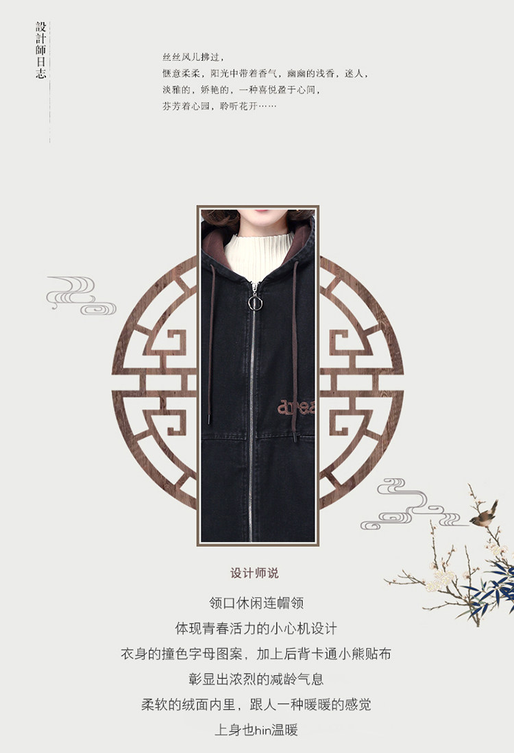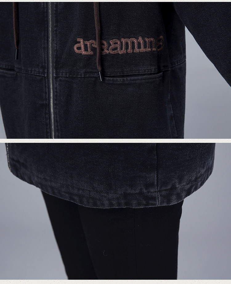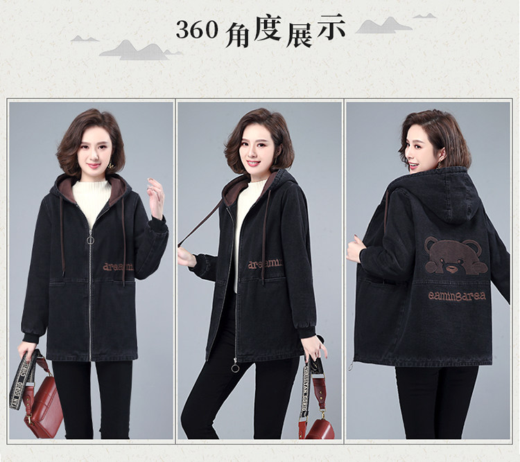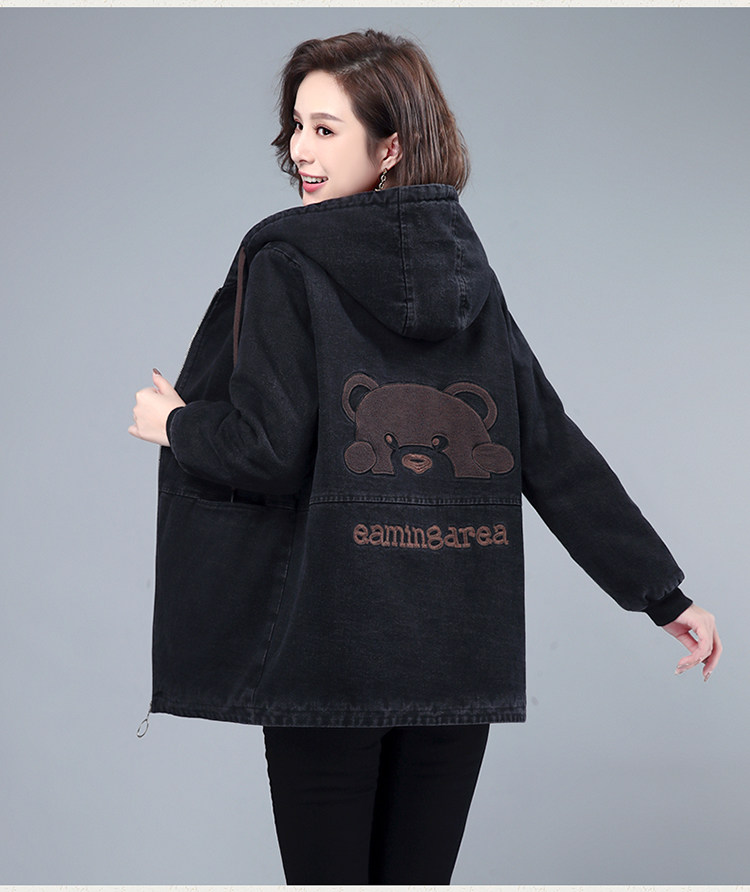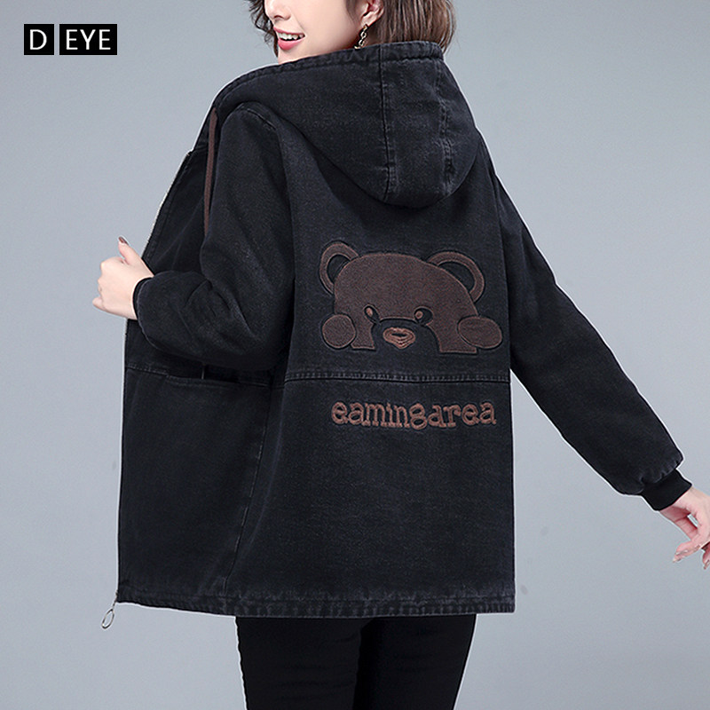 Джинсовый демисезонный длинный пуховик, утепленная куртка с молнией, толстовка с капюшоном, с медвежатами, с вышивкой