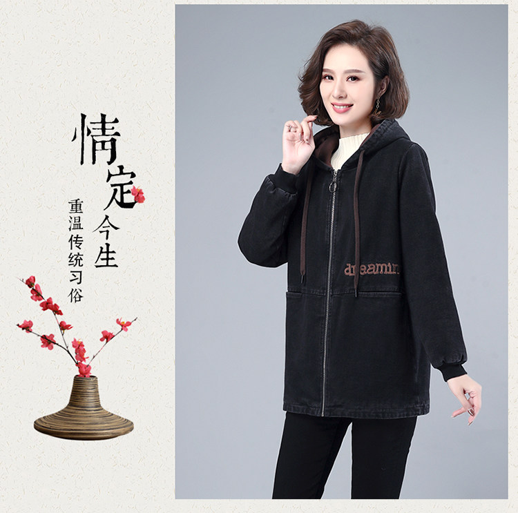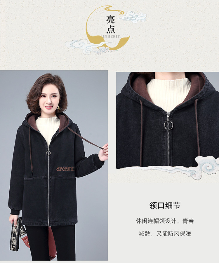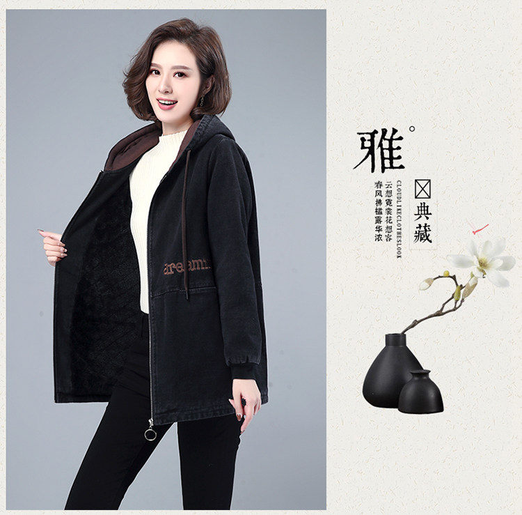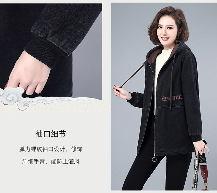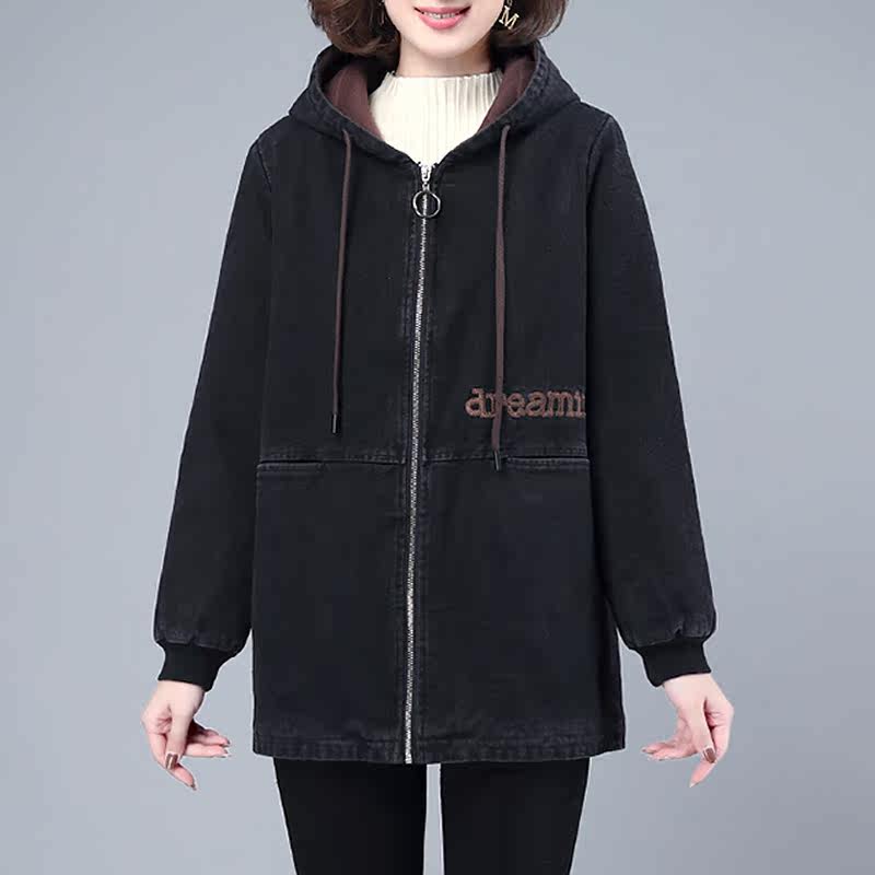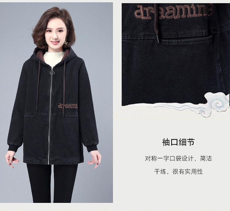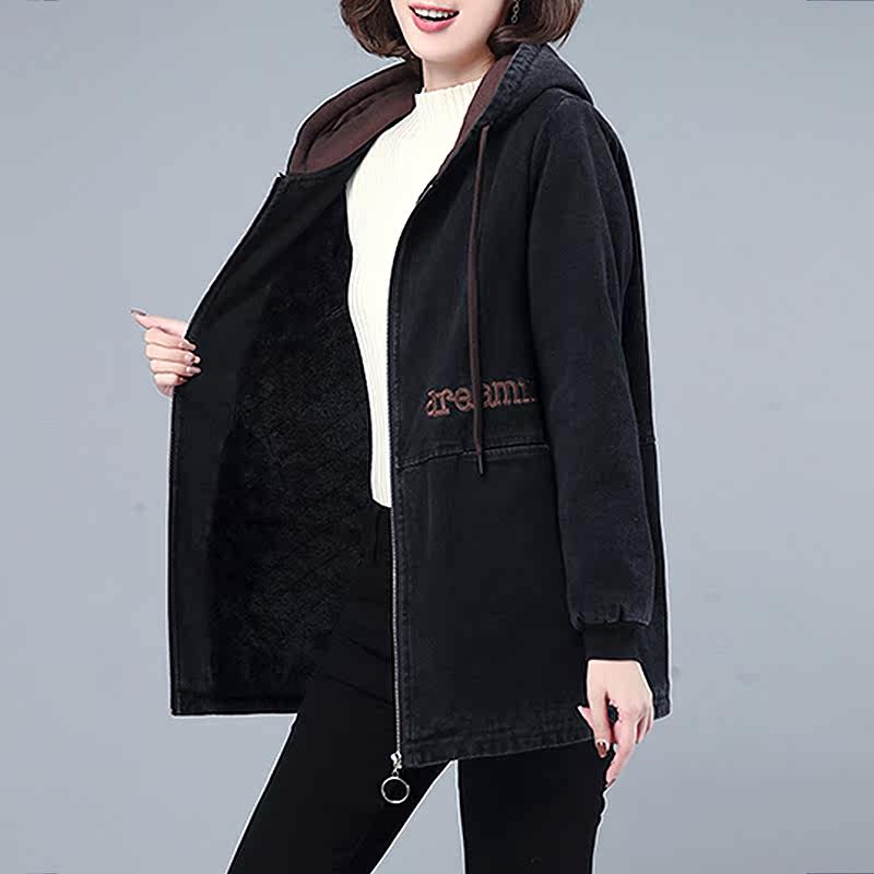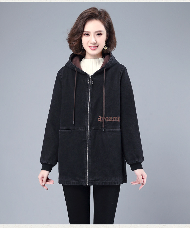 Джинсовый демисезонный длинный пуховик, утепленная куртка с молнией, толстовка с капюшоном, с медвежатами, с вышивкой