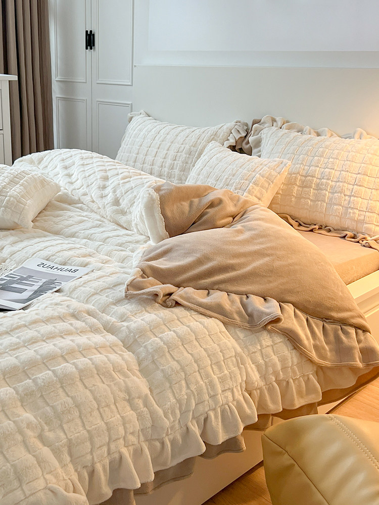 Утепленный комплект, коралловая простыня, зимний пододеяльник, 4 предмета, постельные принадлежности