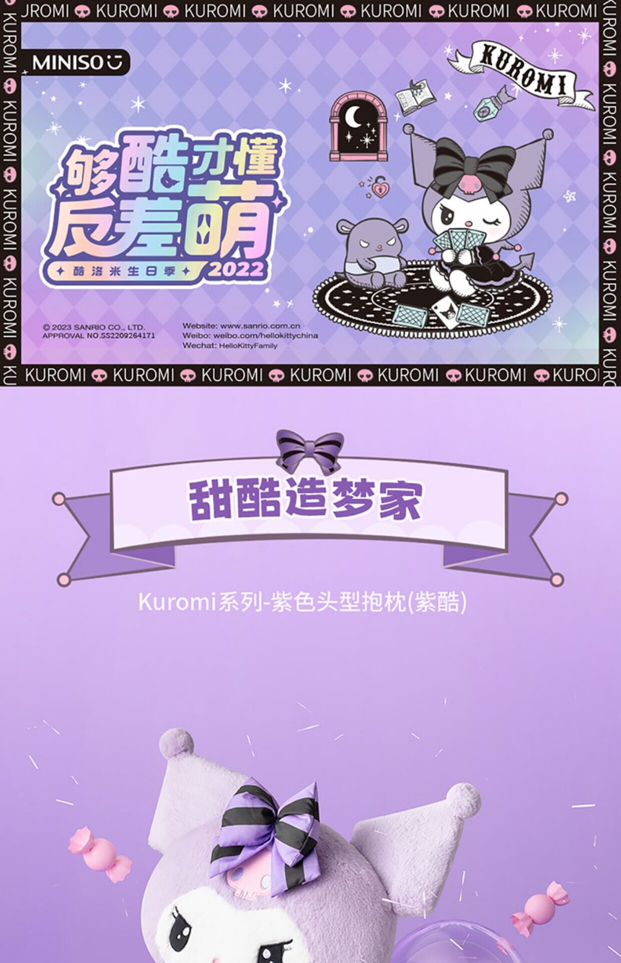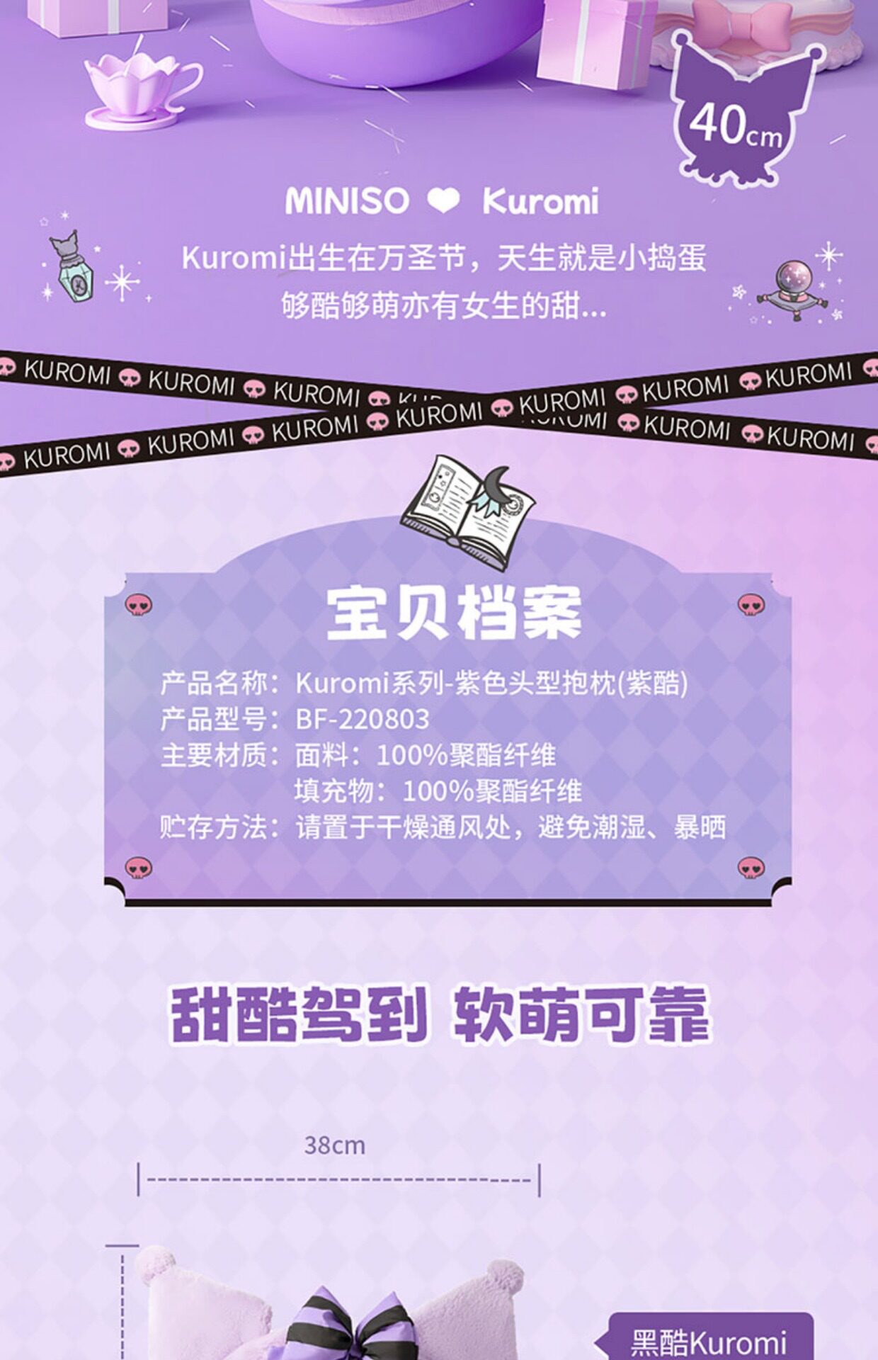 Miniso, сиреневая подушка, плюшевая кукла