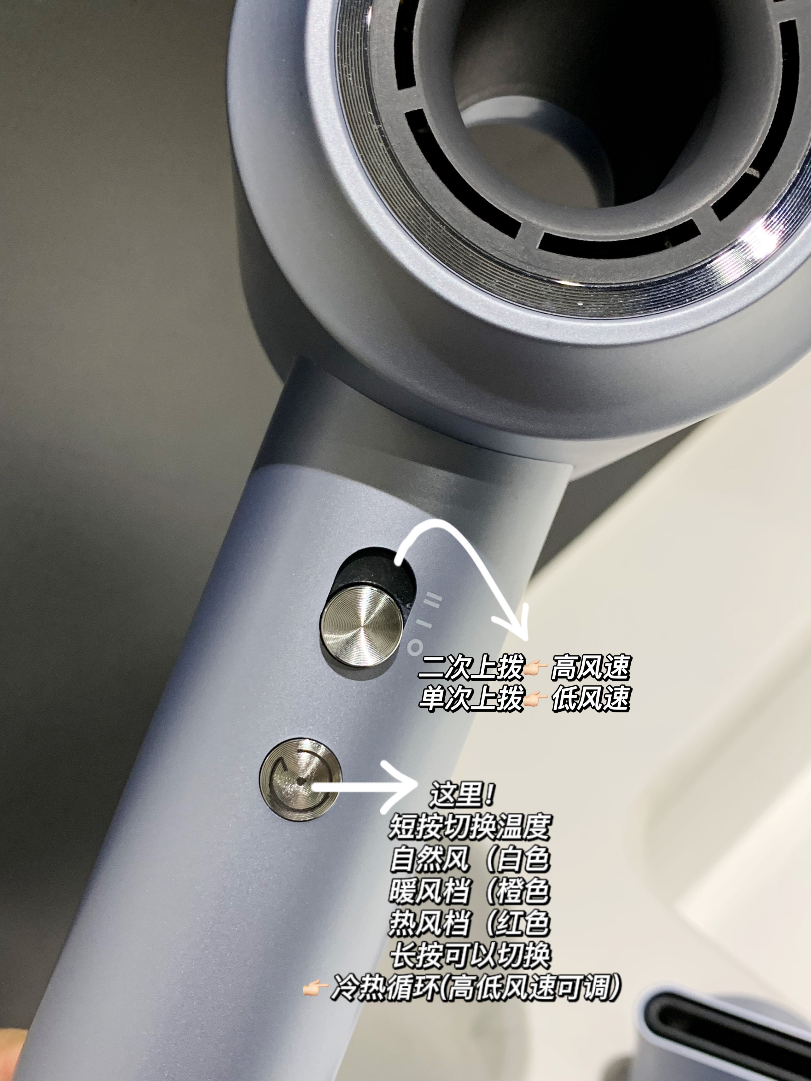 Имеется 5 уровней температуры: холодный воздух, теплый воздух, горячий воздух и два режима горячего и холодного циркулирующего воздуха.