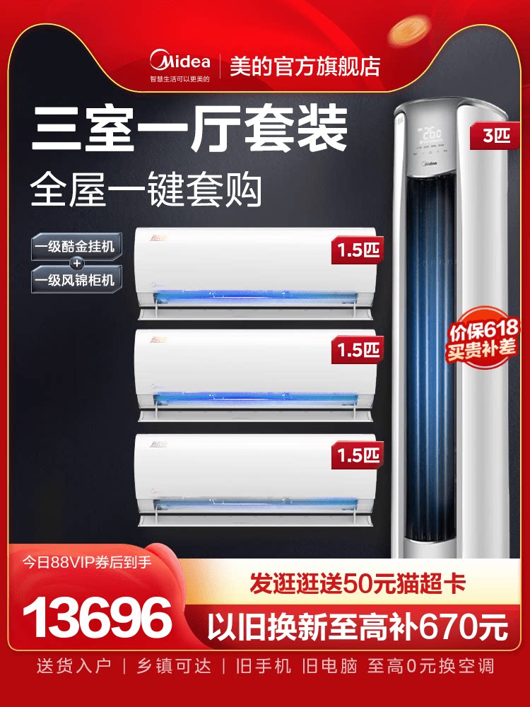 [Три комнаты и один вкладыш] Мидю -кондиционер первого уровня 1,5 Прохладное золото+3 HEP из большего предыдущего 35ZHA*3+72ZHB
