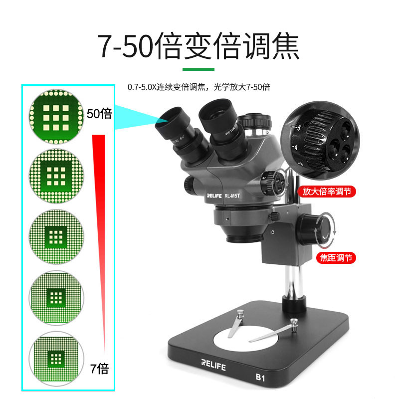 Настольный стереоскоп Xinxun Tools RL-M5T 7-50x HD с непрерывным зумом для ремонта мобильных телефонов, настоящий тринокулярный микроскоп