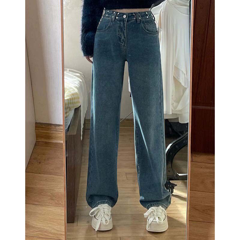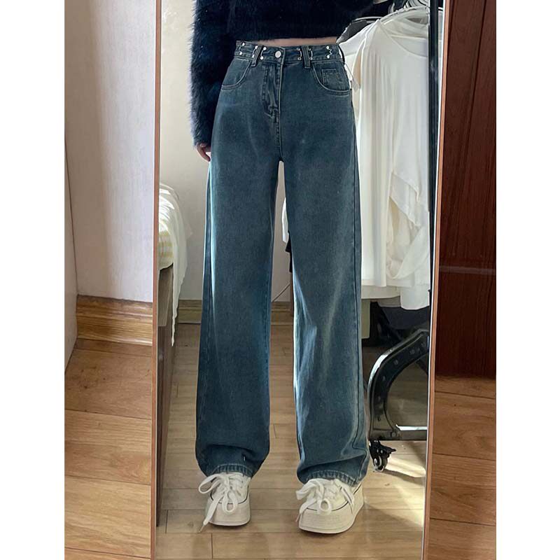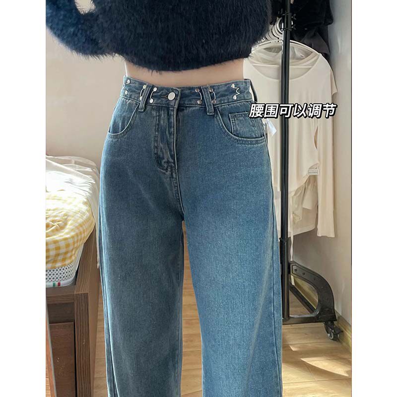 Осенние джинсы, демисезонные штаны, высокая талия, 2024 года, большой размер, свободный прямой крой