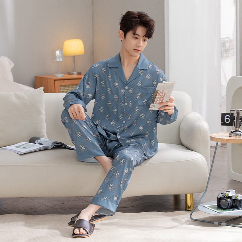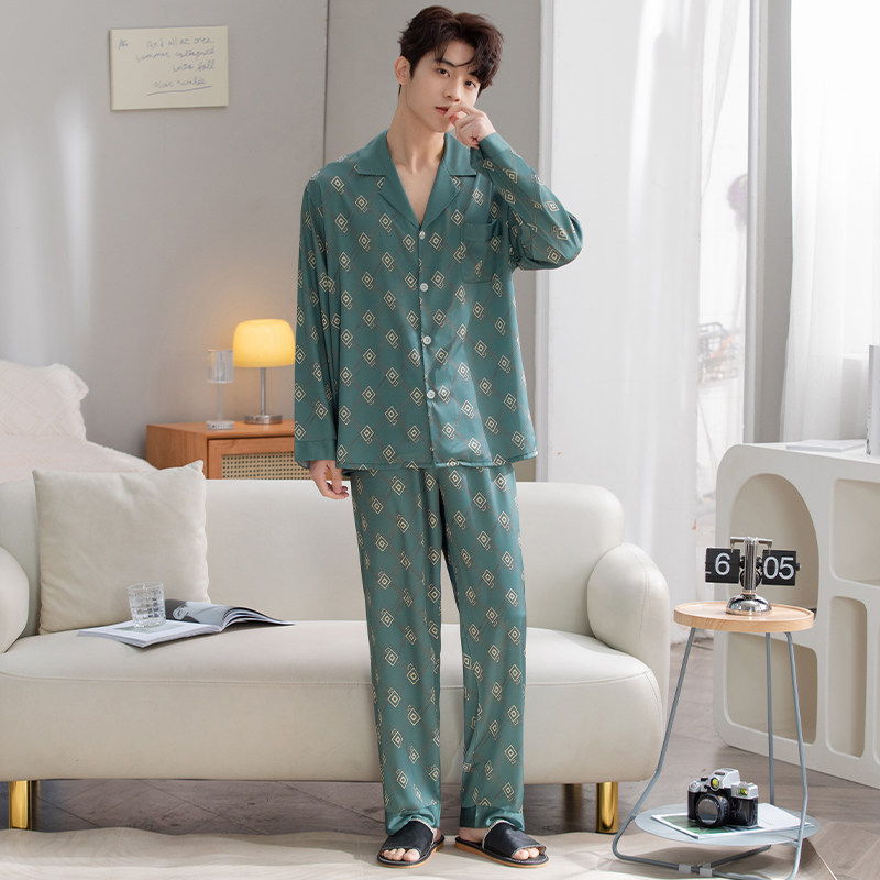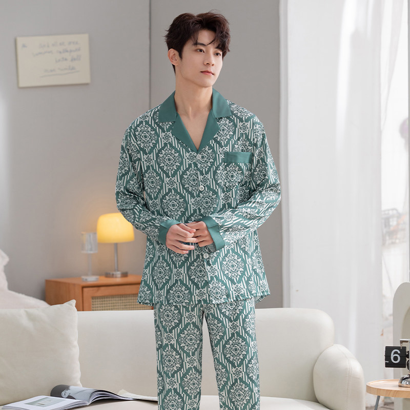 Мужская весенняя осенняя шелковая пижама, японские цветочные композиции, комплект, 2023 года