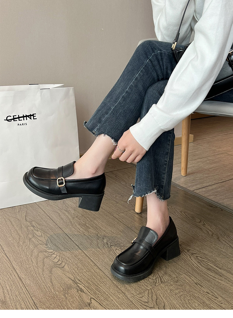 南在南方 Универсальная демисезонная обувь в английском стиле для кожаной обуви, высокие черные лоферы, в британском стиле