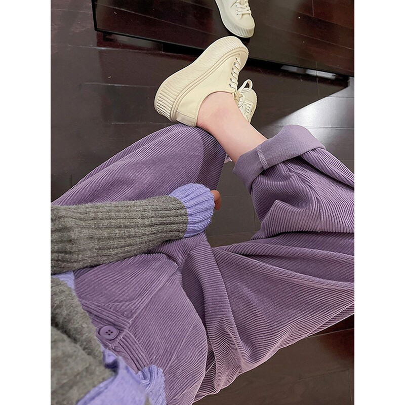 Весенние небольшие вельветовые флисовые сиреневые штаны, тренд сезона, подходит для подростков, увеличенная толщина, по фигуре