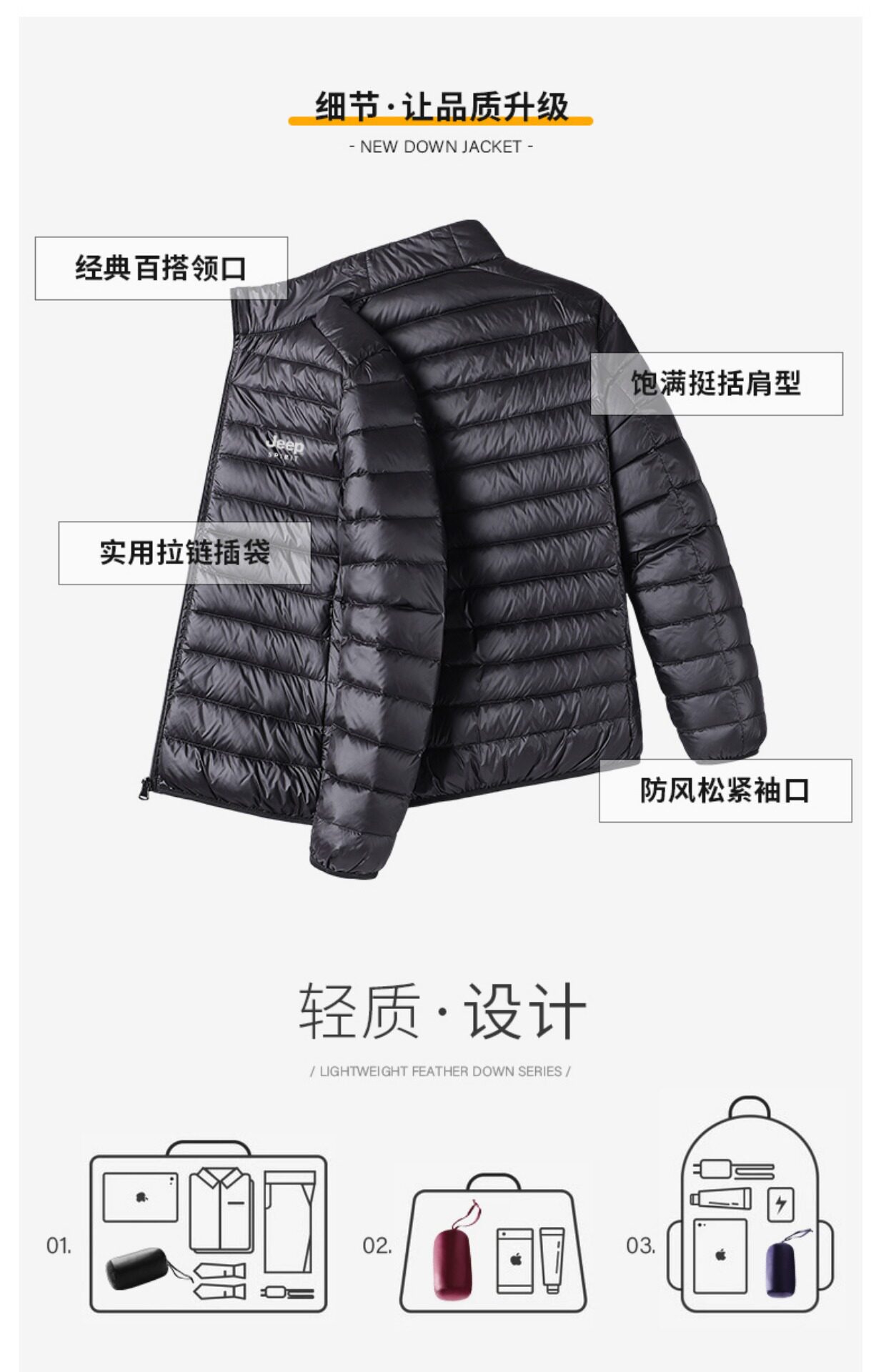 Jeep, мужской джип, легкий и тонкий короткий пуховик, бархатная удерживающая тепло куртка, утиный пух, оверсайз