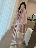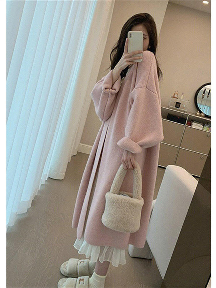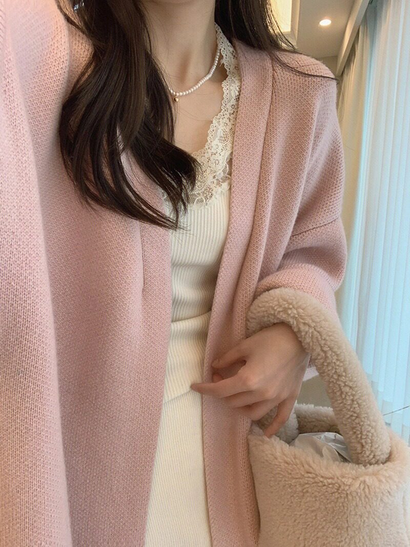 Розовый бархатный длинный свитер, весенняя куртка, кардиган, средней длины, свободный крой